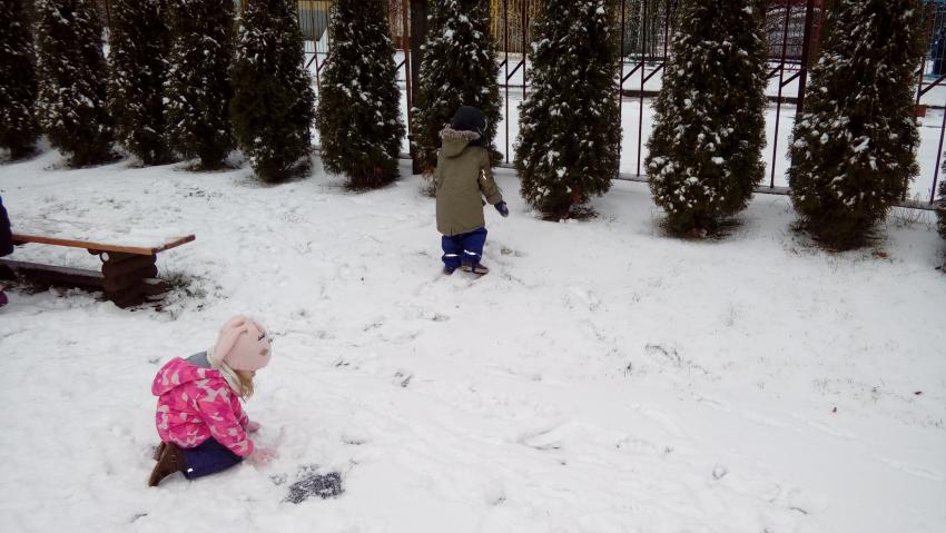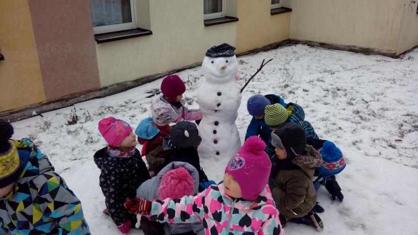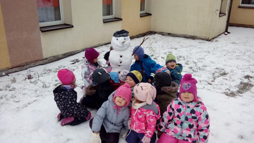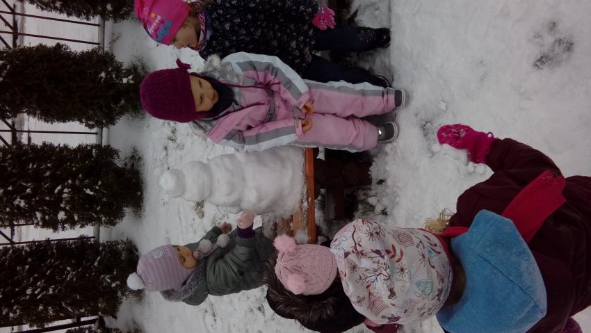 Skorzystaliśmy także z chwilowych opadów śniegu i ulepiliśmy bałwana. Dziec były mokre ale szczęśliwe:):):)
