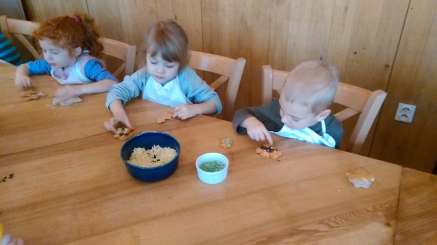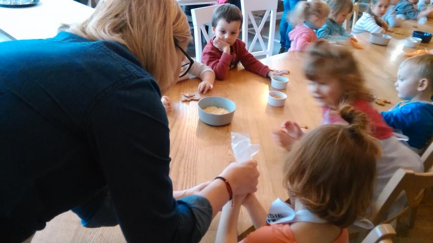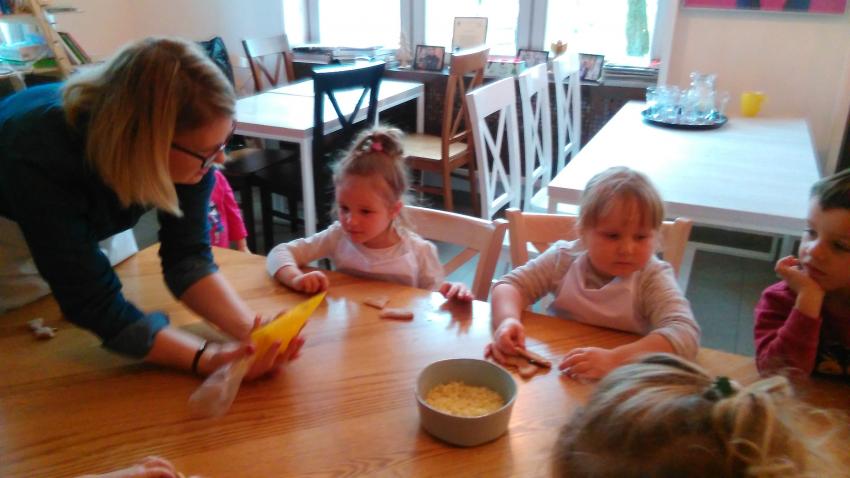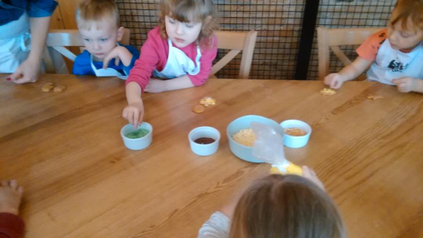 W ten wtorek dwie grupy naszych przedszkolaków (3 i 4 latki): "Kaczuszki" oraz "Elfy" wzięły udział w pierniczkowych warsztatach w Restauracji PROWINCJA. Każde dziecko dostało swoją porcję ciasta, z której powstawały różne kształty ciasteczek i udekorowane wedle gustu dzieci. Niektóre pierniczki zostały zjedzone na miejscu, a część "uratowanych" zabrana do domu...MNIAM, MNIAM!!!!