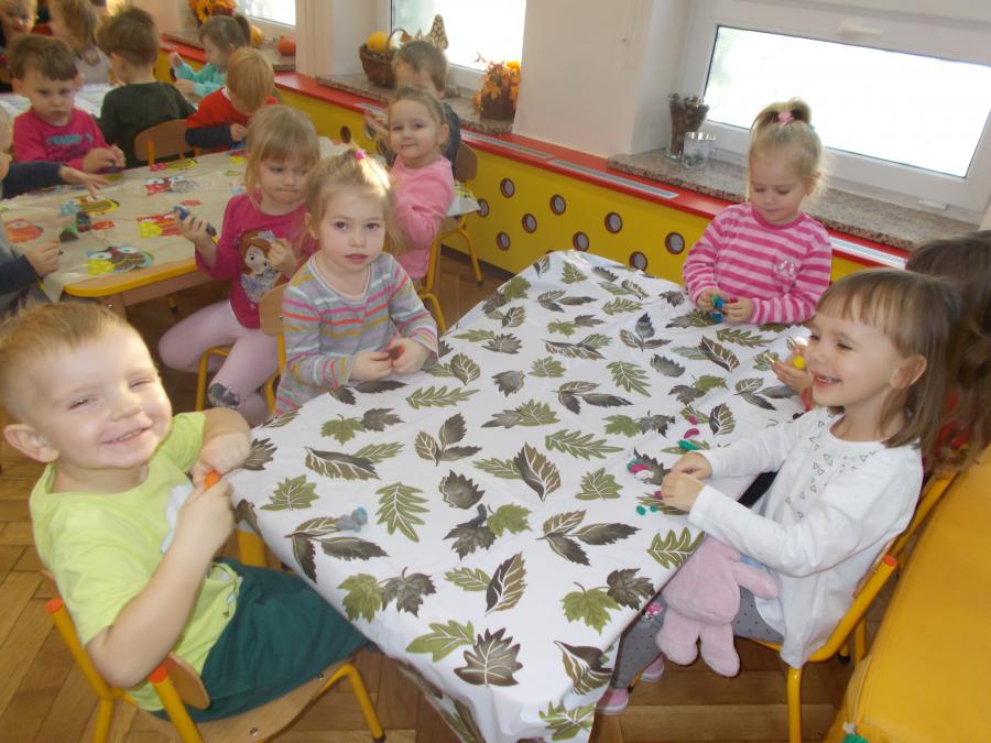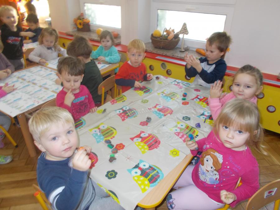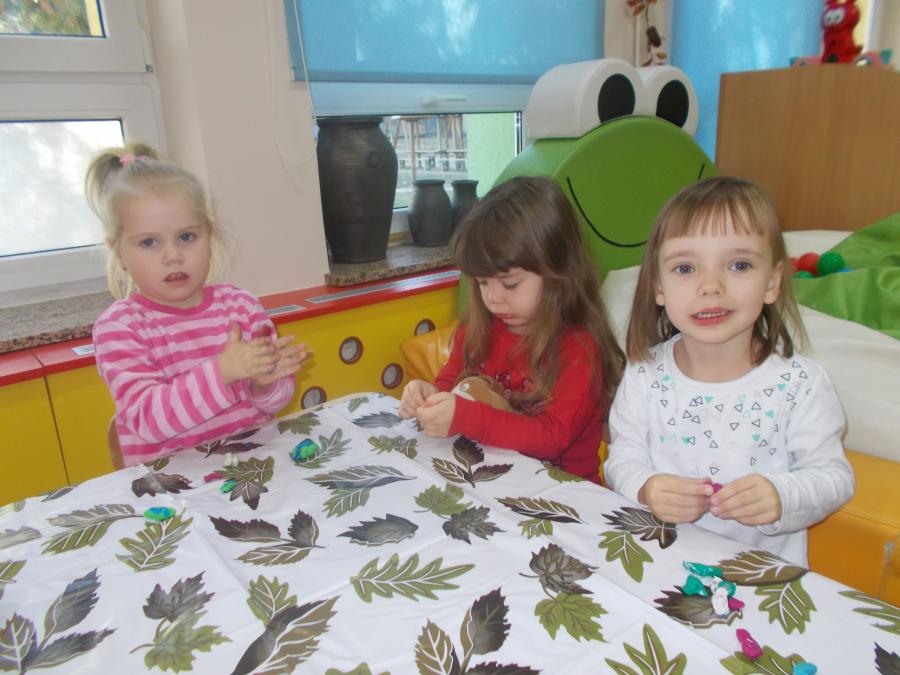 Krasnoludki uwielbiają lepić w plastelinie. Wyobraźnia ruszyła i tak oto powstawały całe rodzinki kolorowych ślimaczków, bohaterów bajkowych oraz inne rożne stworki - potworki... Gratulujemy Krasnoludkom wyobraźni:)