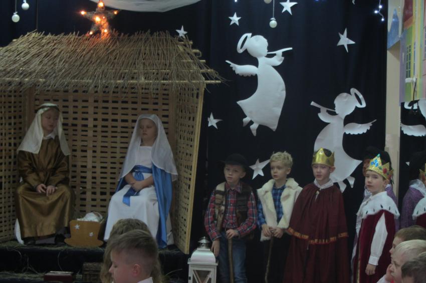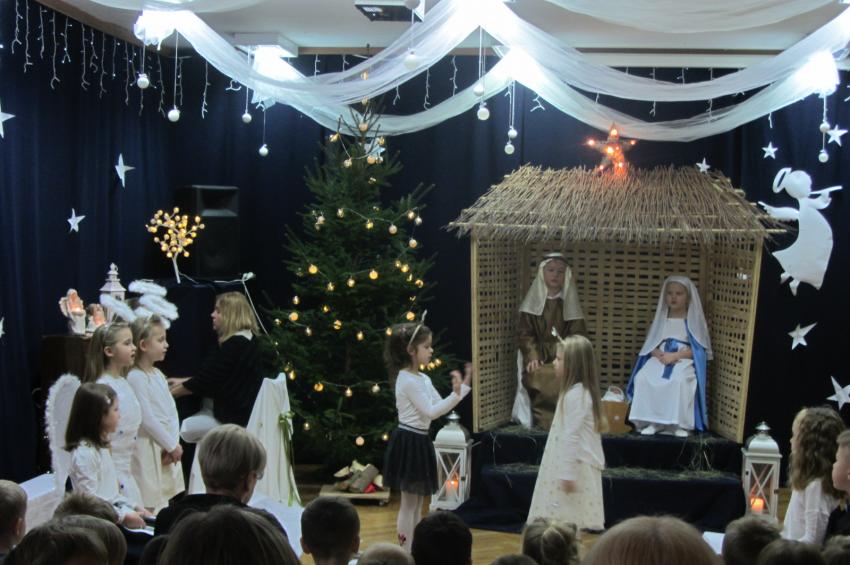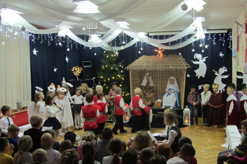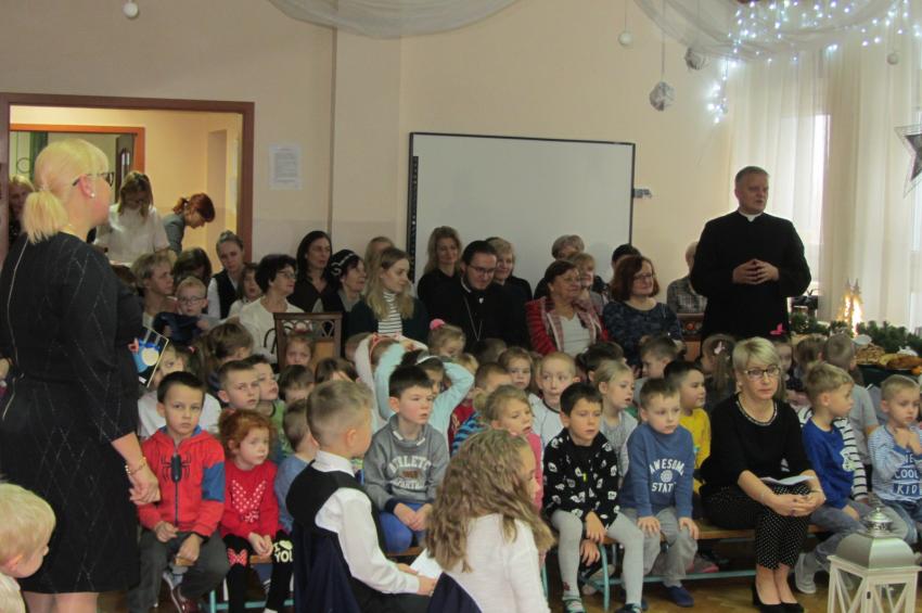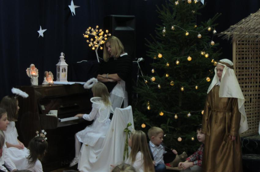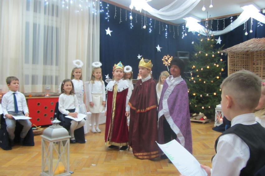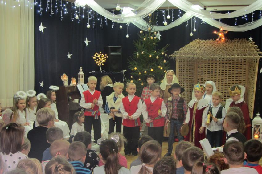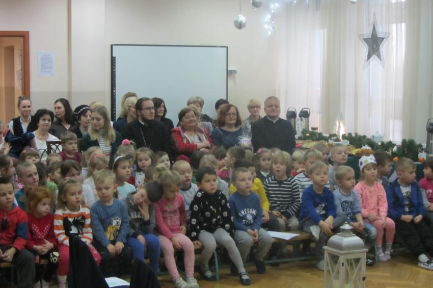 Czas świąteczny zawitał w przedszkolu..... Przybyli goście, wszyscy odświętnie ubrani. Dzieci z grupy Pszczółek przedstawiły Jasełka i grały kolędy. Były świąteczne życzenia, śpiew kolęd i słodki poczęstunek. Miło w takiej atmosferze rozpocząć swięta.