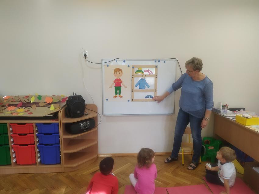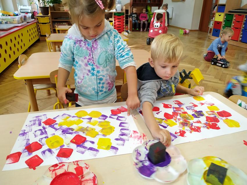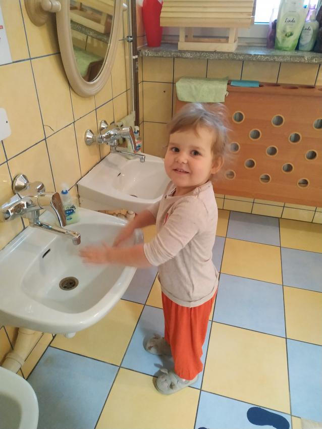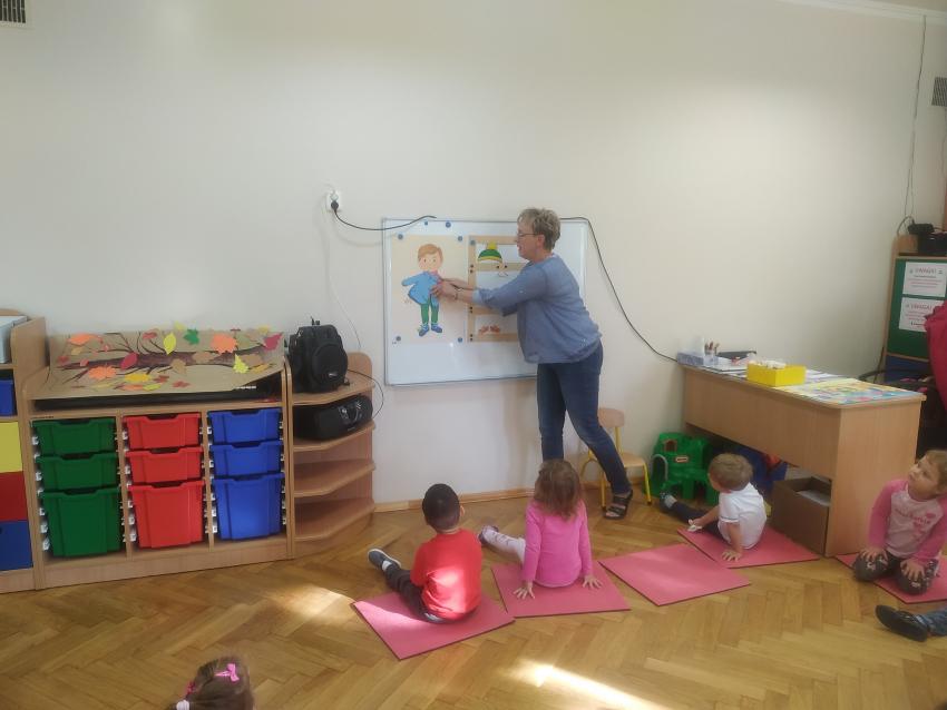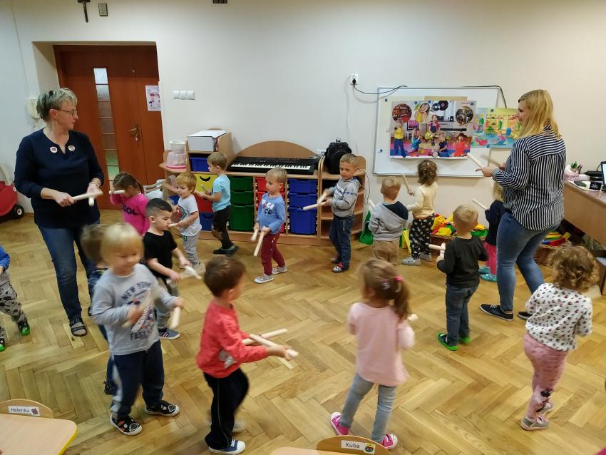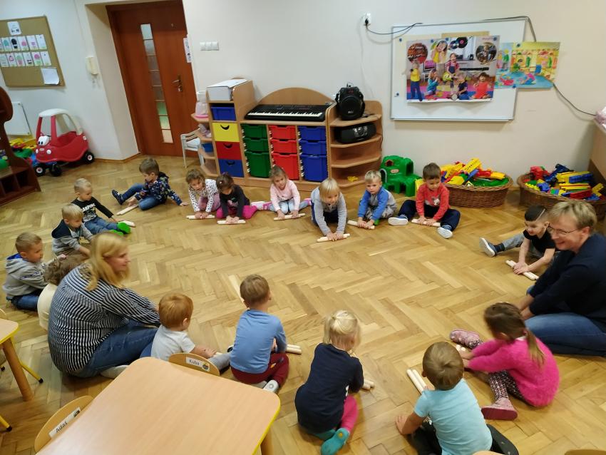 Cały tydzień uczyliśmy się samodzielności w szatni i w toalecie oraz właściwego zachowania się przy posiłkach. Szczególnie dużo czasu poświęciliśmy na naukę prawidłowego mycia rąk. Mieliśmy też czas na zabawy muzyczno-ruchowe, grę na drewienkach, taniec i malowanie.