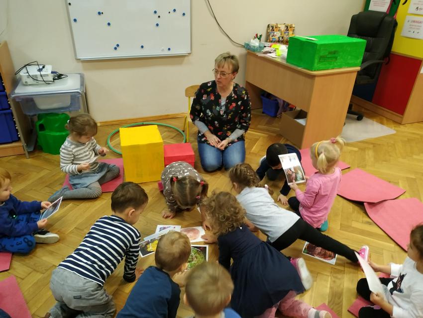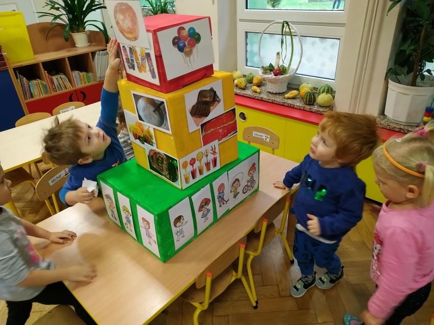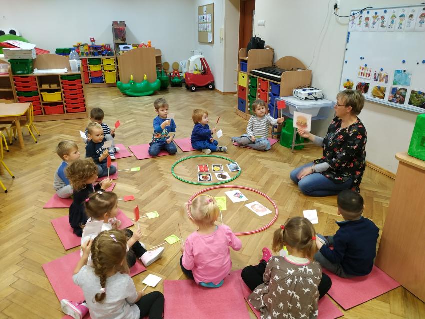 W minionym tygodniu rozmawialiśmy o zdrowym odżywianiu. Dowiedzieliśmy się, co znaczy wyrażenie zdrowe odżywianie i jak wygląda piramida zdrowego żywienia i aktywności fizycznej. Uczyliśmy się określać, co jest zdrowe, a co nie. Wiemy też, jak ważny dla zdrowia jest ruch, i dlatego chętnie bierzemy udział w zabawach ruchowych. Poprzez zabawę w sklep z owocami i warzywami uczyliśmy się przeliczać w zakresie 1–3.