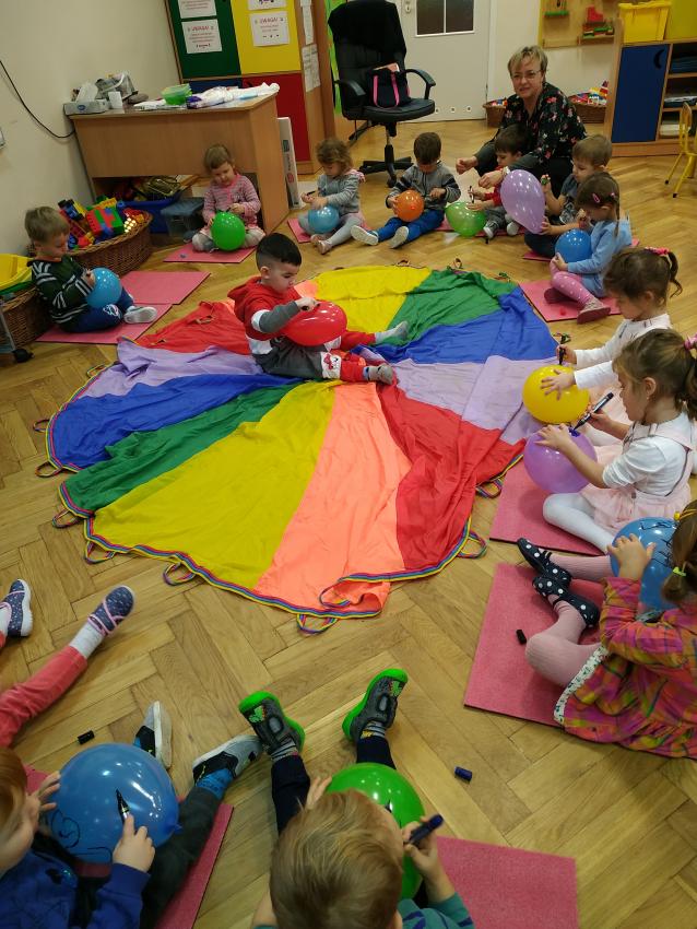 Wiele radości sprawiły nam również urodziny Maksa, któremu prezenty narysowaliśmy na balonikach. Potem za pomocą igiełki pomogliśmy te „prezenty” rozpakować.
