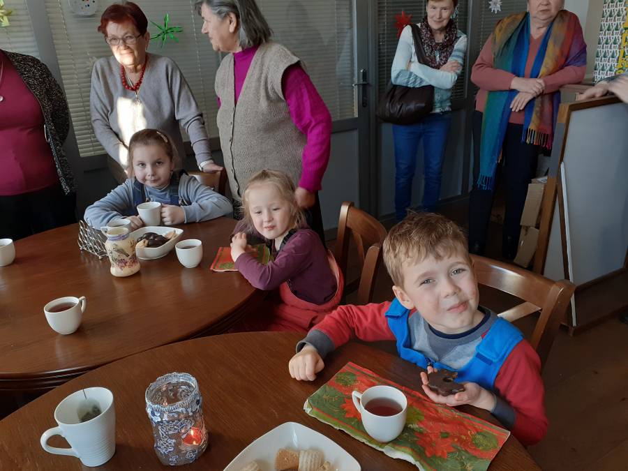 W grudniu TROPICIELE odwiedziły supraski Klub SENIORA. Dzieci przekazały świąteczne kartki z życzeniami wykonane przez wszystkie przedszkolaki w ramach "Tygodnia Życzliwości". Podczas spotkania dzieci wspólnie z Seniorkami zaśpiewały kolędy oraz zatańczyły świąteczny taniec. W miłej i ciepłej atmosferze wypiły herbatkę świętując równocześnie "Dzień Herbaty". Panie Seniorki przygotowały też słodki poczęstunek, a oprócz tego, każde dziecko otrzymało mały mikołajkowy upominek. Dziękujemy z całego serca Paniom Seniorkom,dzięki tej ciepłej atmosferze nasze dzieciaczki poczuły prawdziwą magię Świąt...