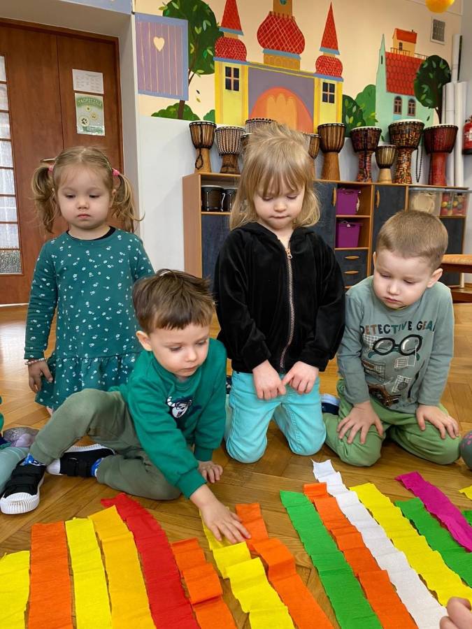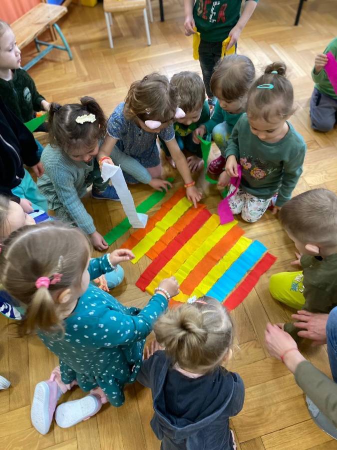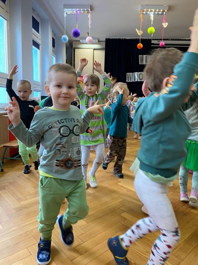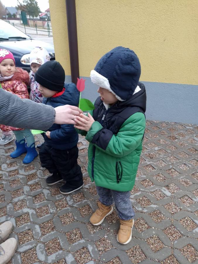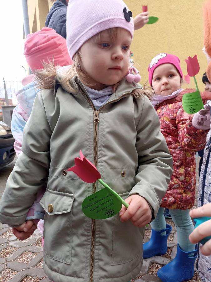 WIOSNA,WIOSNA,WIOSNA ACH TO TY? Zabawy Pszczółek podczas odchodów ?Dnia wiosny?. Grupa wyruszyła również na pochód ulicami Supraśla z wiosennymi kwiatami, które zostały własnoręcznie wykonane.