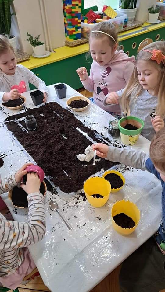 MRÓWECZKI nie mogą doczekać się aż przyjdzie WIOSNA!! Postanowiły założyć w sali zielony ogródek. Pierwszy Dzień Wiosny to doskonała okazja, aby wspólnie świętować nadejście tej pory roku. W tym dniu wyruszyliśmy barwnym korowodem trzymając w rękach wiosenne kwiaty, które wręczaliśmy napotkanym mieszkańcom Supraśla. Byliśm równie na wycieczce autokarowej do Epi-Centrum Nauki - Strefa Małego Odkrywcy oraz Fabryki Misia w Białymstoku.