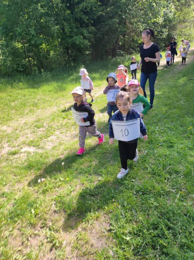 W dniu dzisiejszym 30.05.2023r dzieci z naszego Przedszkola po raz kolejny wzięły udział w IX Ogólnopolskim Maratonie Przedszkolaków ? ?Sprintem do Maratonu " pod honorowym patronatem Ministerstwa Kultury Dziedzictwa Narodowego i Sportu. Celem tego wydarzenia jest promowanie zdrowego stylu życia i aktywnego spędzania czasu , w tym czasu na świeżym powietrzu. Popularyzowanie biegów wśród dzieci oraz wyrabianie u przedszkolaków nawyku podejmowania aktywności fizycznej.