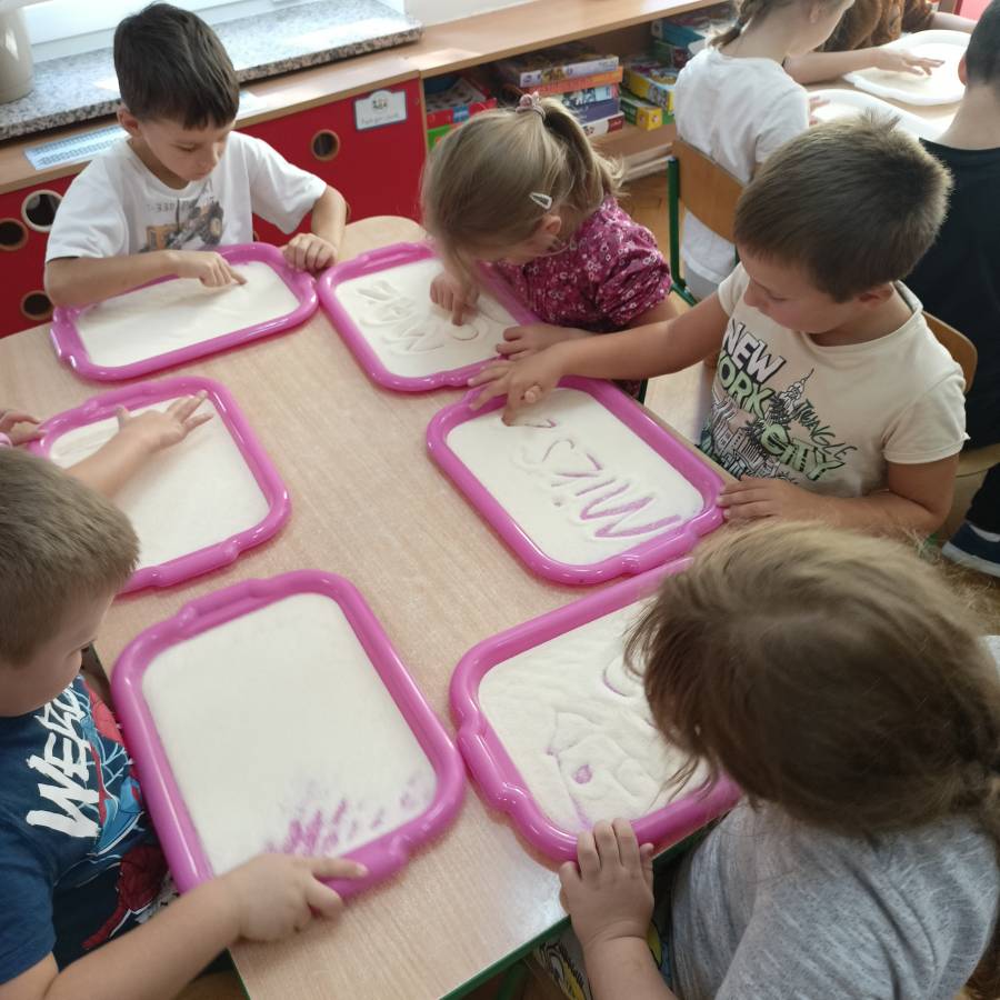 Dzieci z grupy ?Odkrywcy? już od pierwszych dni września gotowi do pracy rozpoczęli ostatni rok pobytu w przedszkolu. Uczestniczyli w zajęciach pokazowych zajęć dodatkowych, spacerowali po lesie korzystając ze wspaniałej tegorocznej wrześniowej pogody, kosztowali malinek zasadzonych w naszym przedszkolnym ogrodzie. Rozpoczęli naukę literek Metodą Dobrego Startu świetnie się przy tym bawiąc. 20 września ostatni raz świętowali Dzień Przedszkolaka (już za rok będą pełnoprawnymi uczniami szkoły podstawowej). Wrzesień to był też czas urodzin Małgosi i Damiana. Świętowaliśmy z nimi ich 6-te urodziny.