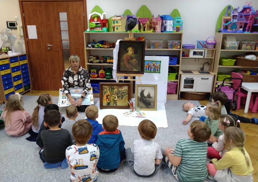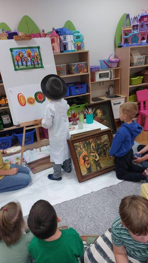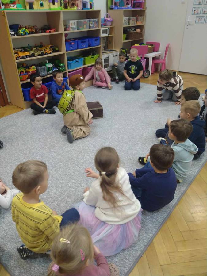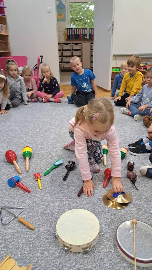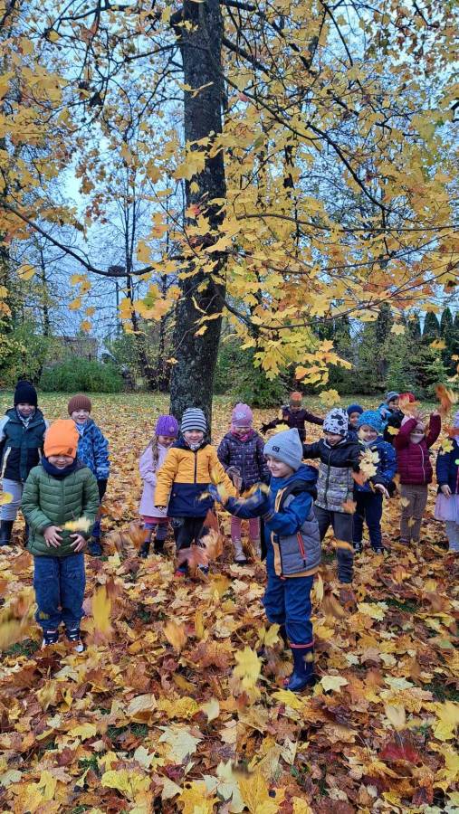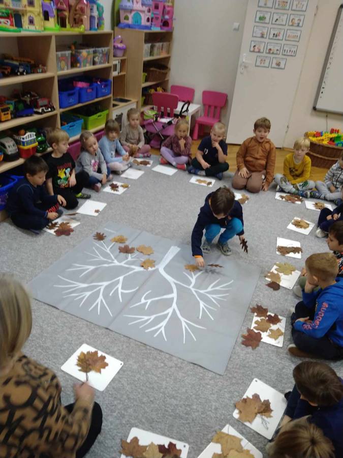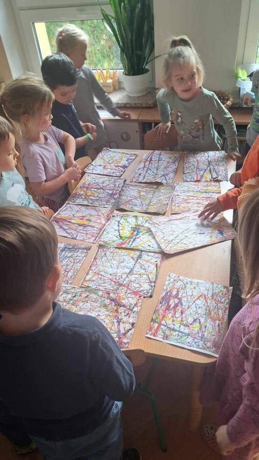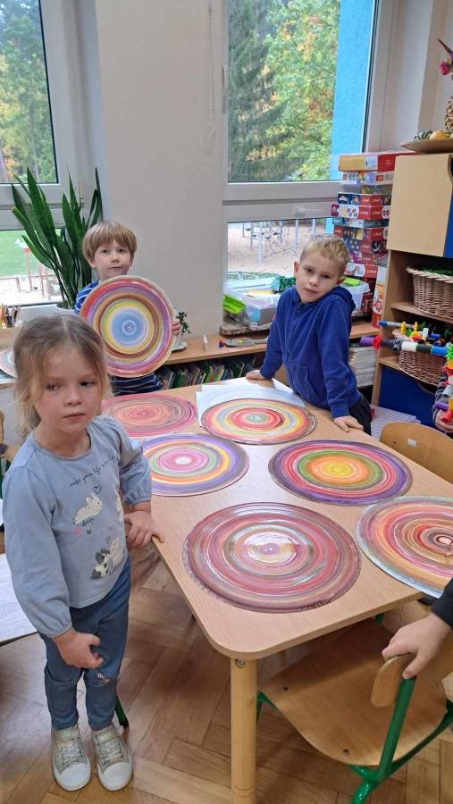 Październik to miesiąc jesienny w naszej grupie. Zajmowaliśmy się warzywami i owocami, zarówno typowo jesiennymi, jak też dojrzewającymi podczas innych pór roku. Dzieci wiedzą, że zjadanie warzyw i owoców bardzo wpływa na nasze zdrowie. Omawialiśmy też Piramidę Zdrowego Żywienia. Wiemy, że aktywność fizyczna ma też wielki wpływ na nasze zdrowie. Rozmawiając na tematy związane ze zdrowiem poruszaliśmy problem dostosowania ubioru do pogody. Odpowiednio ubrani wychodziliśmy do parku i lasu. Dzieci szukały różnych darów jesieni, które skrupulatnie zbierały. Zgromadzone liście, kasztany, żołędzie stały się okazją do działań manipulacyjnych, klasyfikacji, segregacji wg kształtu, koloru i układania rytmów. Dzieci pogłębiały wiedzę przyrodniczą na zajęciach outdoorowych, dowiedziały się dlaczego liście zmieniają kolor i opadają z drzew. Rozmawialiśmy też o drzewach iglastych. Dzieci dowiedziały się po co drzewom są szyszki. Wykonaliśmy też dużo prac plastycznych, kiedy zgłębialiśmy z dziećmi temat sztuki. Stworzyliśmy mapę myśl i dużo zajęć wokół pojęcia ARTYSTA. Dzieci poznały zawody artystyczne. Poznawaliśmy też nowe techniki plastyczne, pogłębialiśmy wiedzę na temat świata muzyki. Omawialiśmy temat związany z teatrem, kinem i fotografią. Październik to bogaty miesiąc na zmiany w przyrodzie i atrakcyjny na zajęcia dla dzieci w przedszkolu.