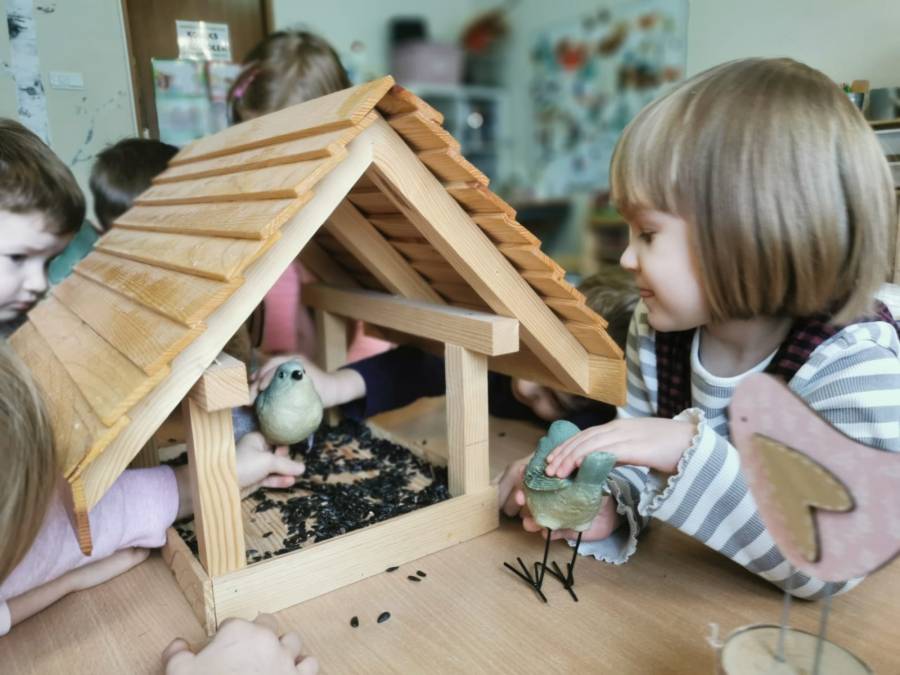W grudniu robiliśmy ozdoby choinkowe, w które ubraliśmy naszą choinkę. Zimą także pamiętamy o ptakach, by zapewnić im stały dostęp do jedzenia.
