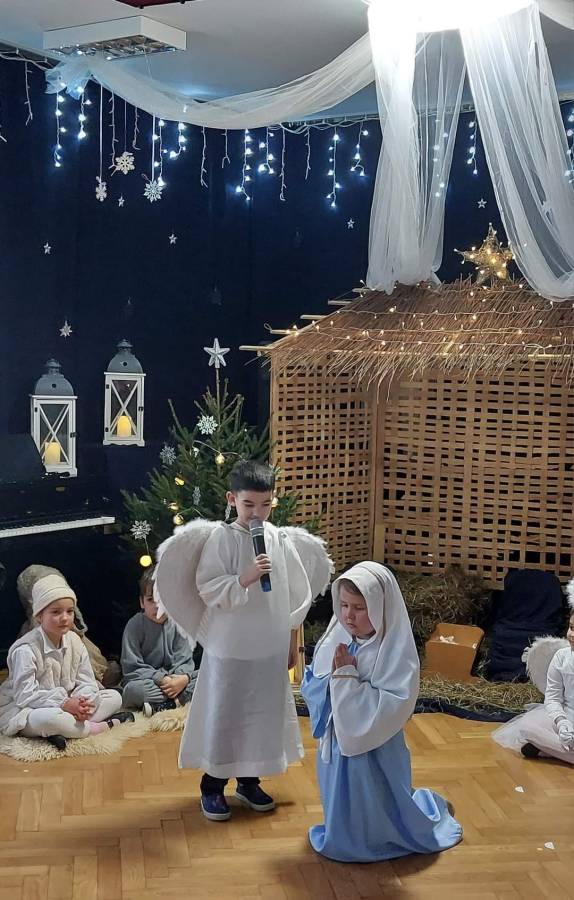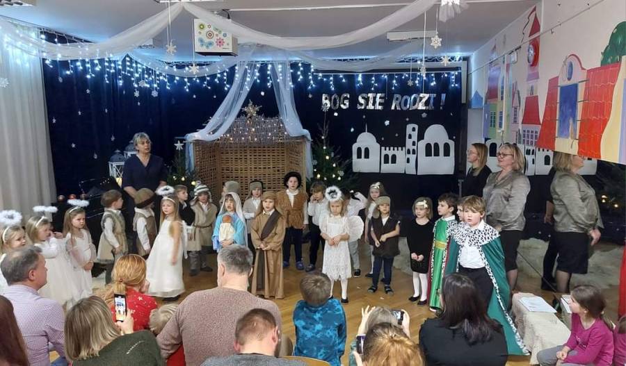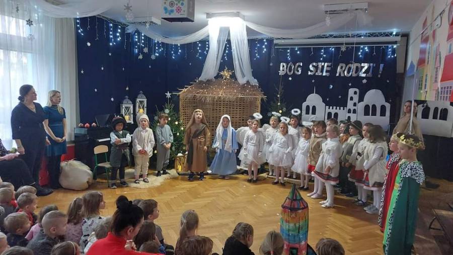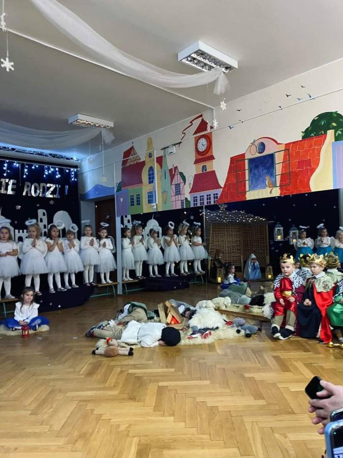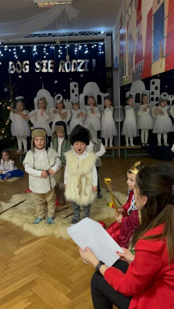 W tym roku również postanowiłyśmy przeprowadzić tę uroczystość, integrując dom rodzinny i przedszkole, wprowadzając nastrój świąteczny oraz pokazując rodzicom umiejętność prezentowania swoich zdolności wokalno ? recytatorskich przed najbliższymi.