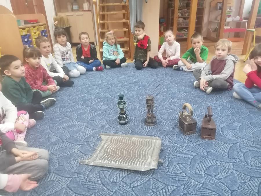 W ramach tematu tygodniowego zapoznały się z dawnymi sprzętami domowymi, rozmawiały też o wynalazkach.