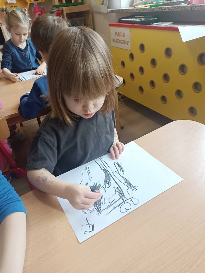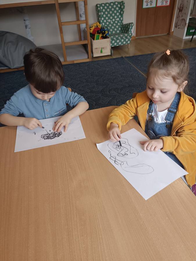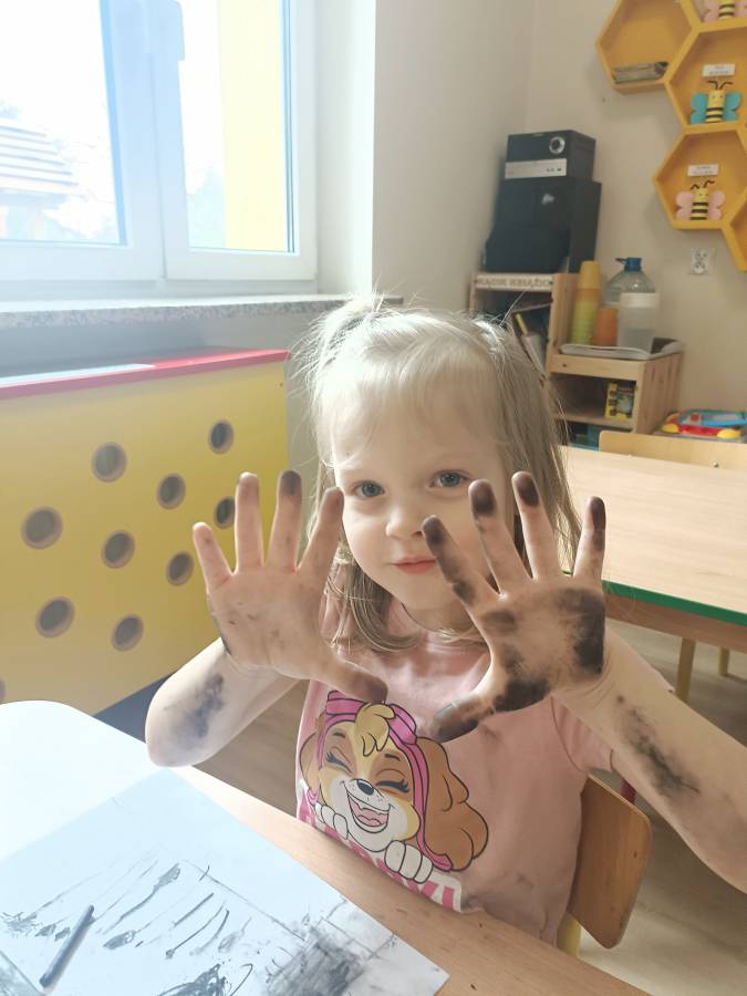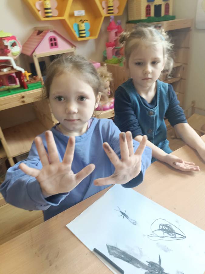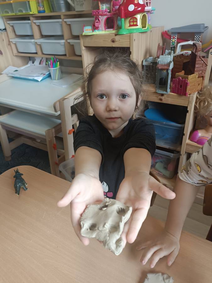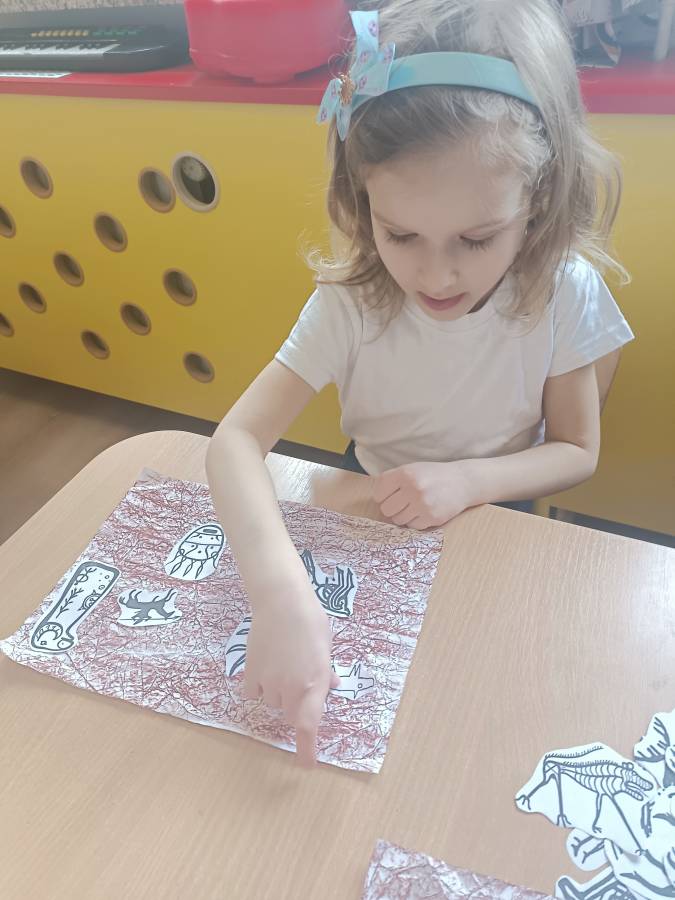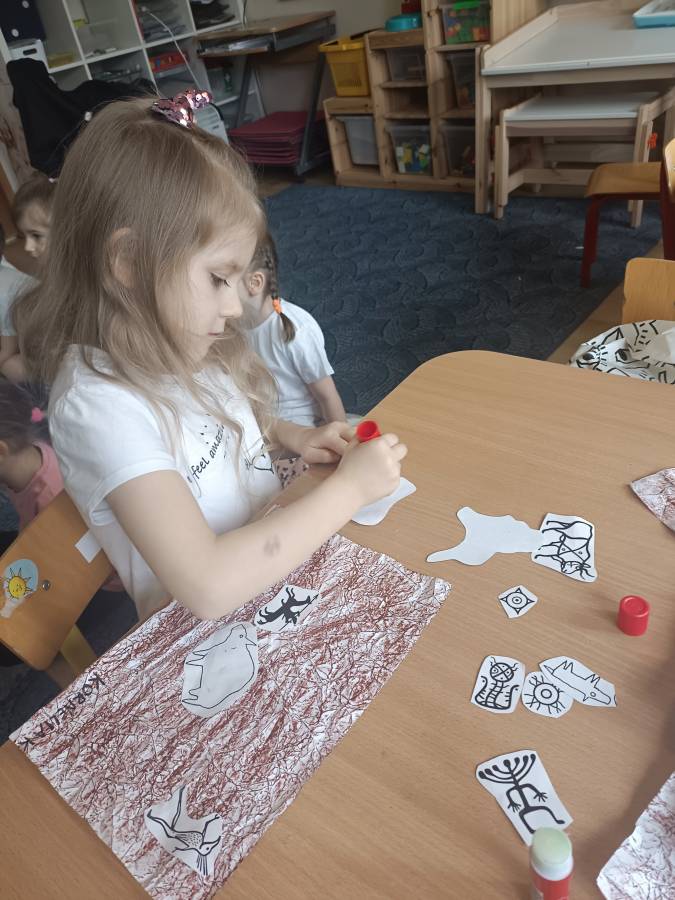 Bawiliśmy się w ludzi pierwotnych. Dzieci dowiedziały się, że nasi przodkowie mieszkali w jaskiniach, szałasach i zajmowali się zbieractwem, połowem ryb, polowaniem.