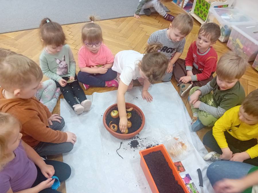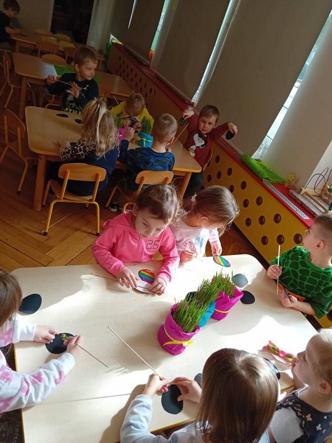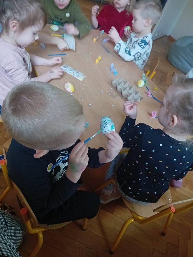 Czas przed Wielkanocą upłynął nam na przygotowaniach do Świąt Wielkanocnych: dekorowaniu sali, rozmowach o tradycjach świątecznych, robieniu stroików Wielkanocnych.