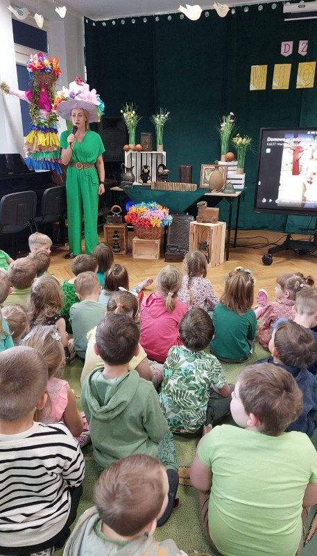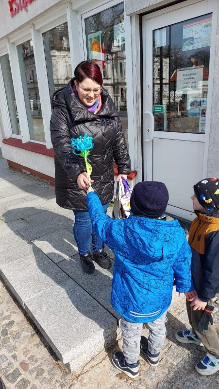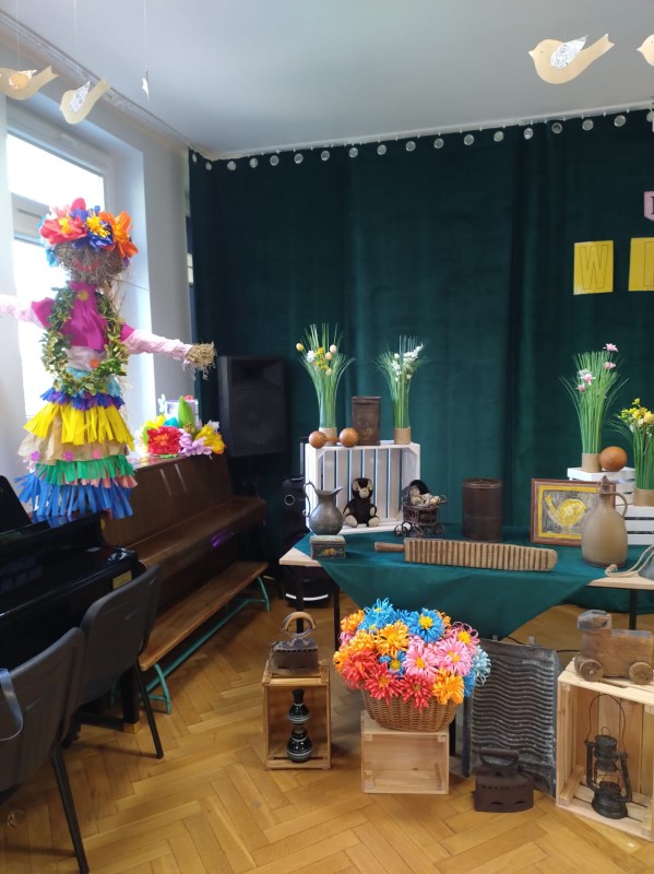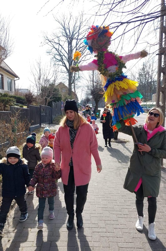 W barwnym pochodzie wróciliśmy do przedszkola po drodze rozdając przechodniom lub zostawiając w skrzynkach na listy własnoręcznie przygotowane wiosenne kwiaty. W ten sposób wszystkie dzieci chciały wyrazić swoją radość z przyjścia nowej pory roku. Dzieci w tym dniu poznały tradycje i zwyczaje związane z powitaniem wiosny.