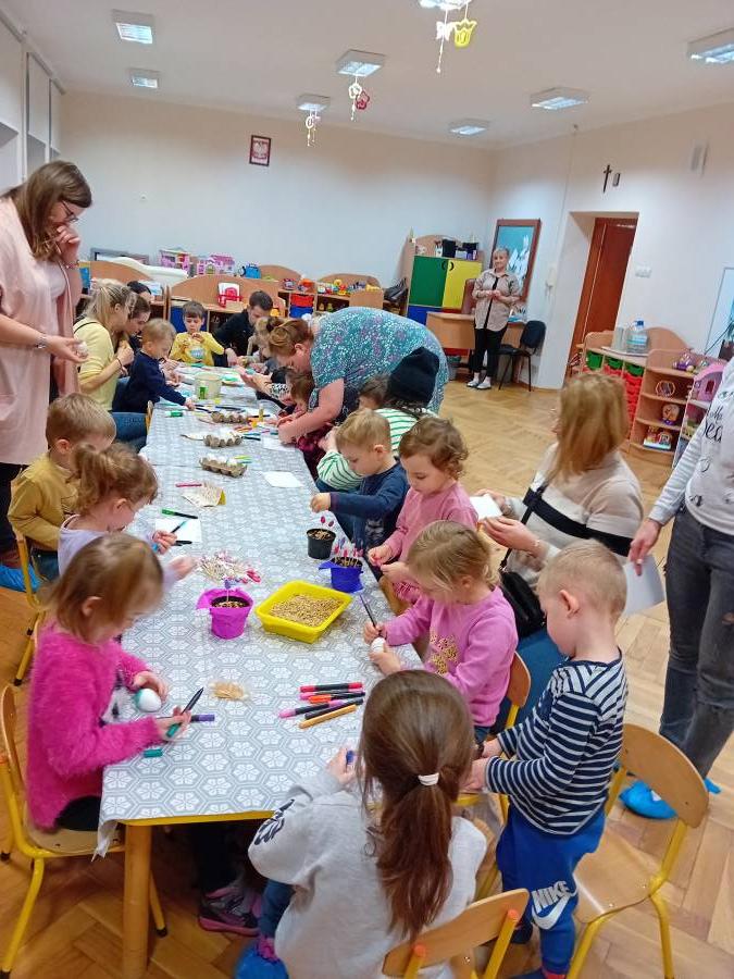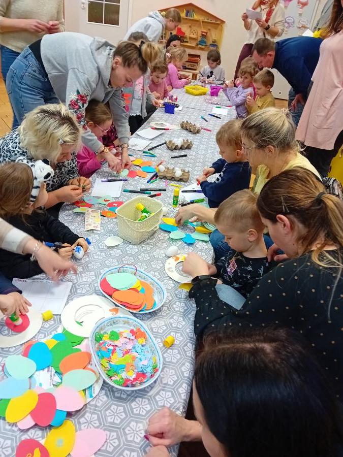 Właśnie z tej okazji zorganizowaliśmy we wtorek, 19 marca 2024r., Wielkanocne Warsztaty z udziałem dzieci oraz Rodziców. Wszyscy zebrani z wielkim zaangażowaniem, zapałem i twórczą weną tworzyli ozdoby wielkanocne.