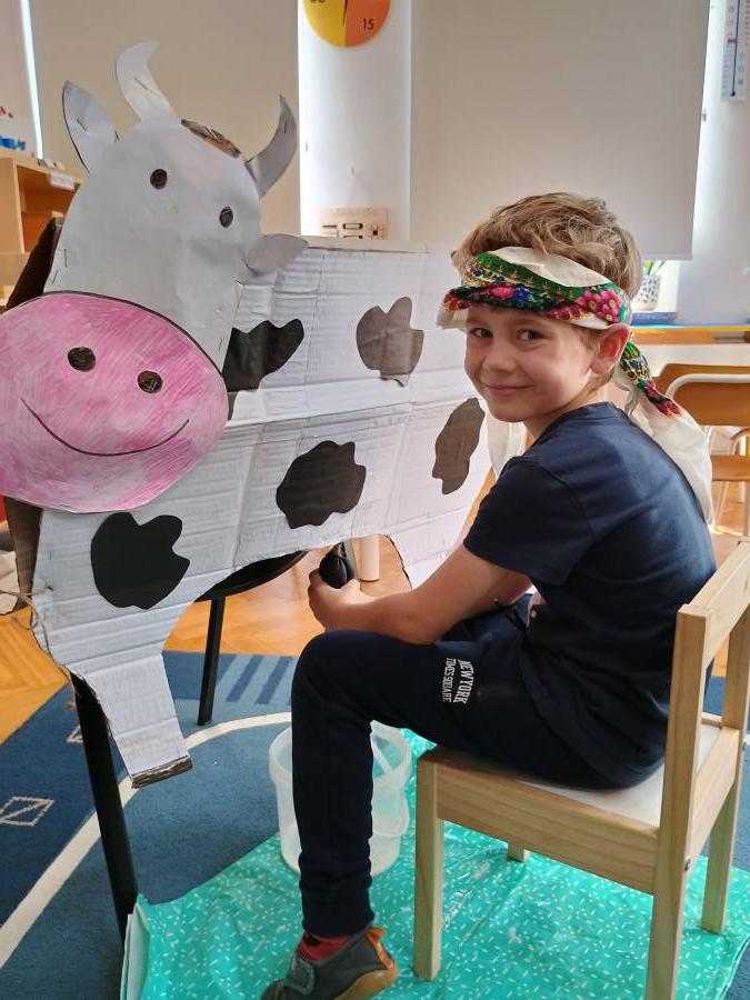 Był też czas na poznanie pracy rolnika i naukę dojenia krowy.
