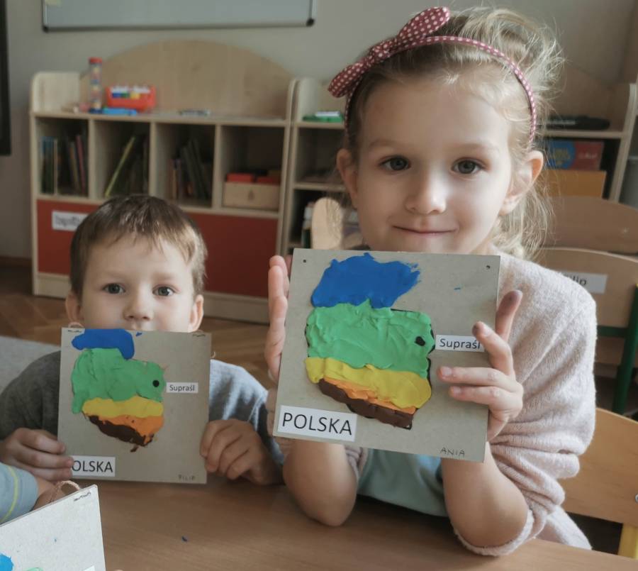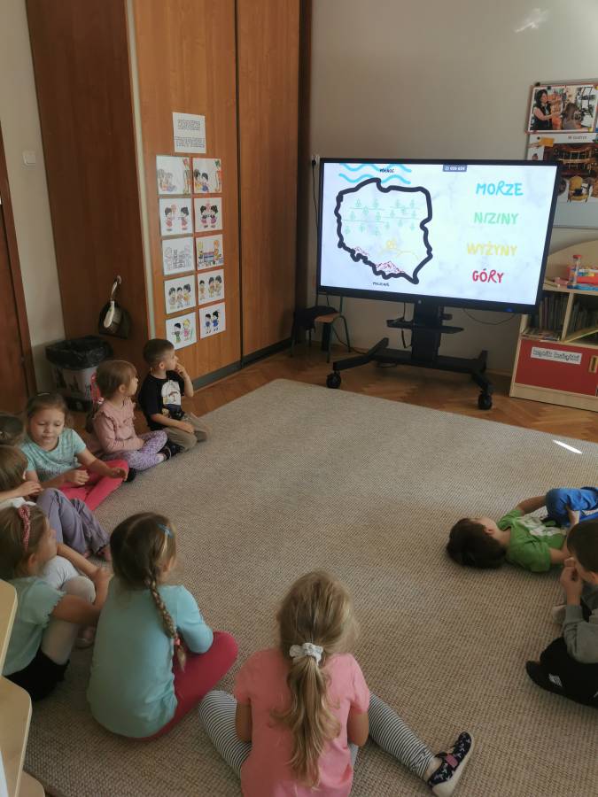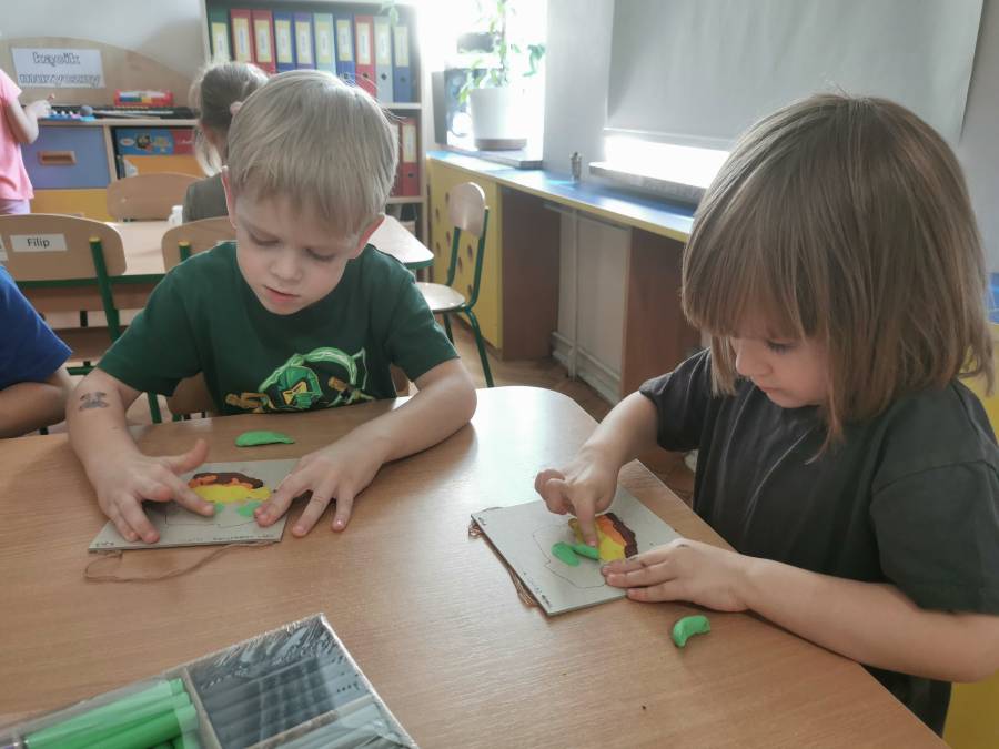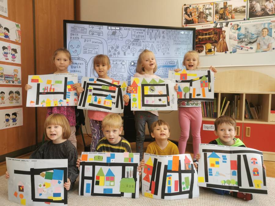 We wrześniu w wakacyjnym nastroju powoli wchodziliśmy w nasz przedszkolny świat. Wspominaliśmy wakacyjne podróże, odnajdując na mapie ich trasy, rozmawialiśmy o emocjach towarzyszących pierwszego dnia w przedszkolu, przypomnieliśmy sobie plan dnia, według którego działamy, i jak co roku stworzyliśmy wspólnie nasz grupowy regulamin. Dzięki pracy z mapą wiemy już, gdzie w Polsce leżą i jak oznaczane są morze, jeziora i góry.