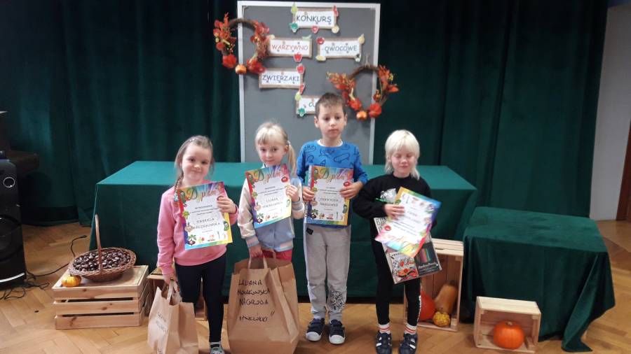 Wzięliśmy też udział w konkursie Warzywno-owocowe Zwierzaki Cudaki, a także tworzyliśmy piękne jesienne prace plastyczne.