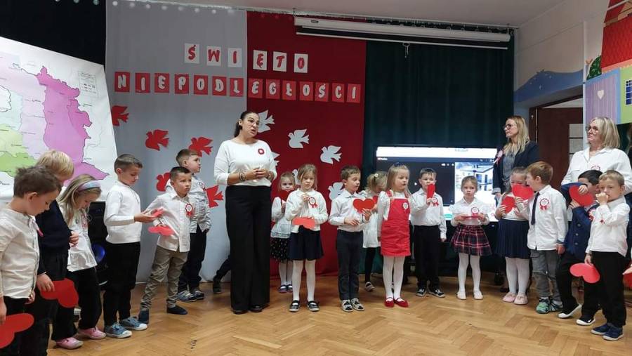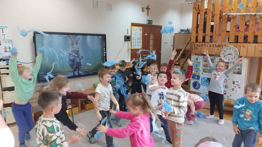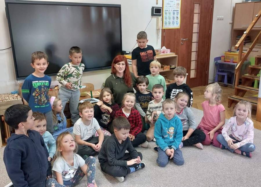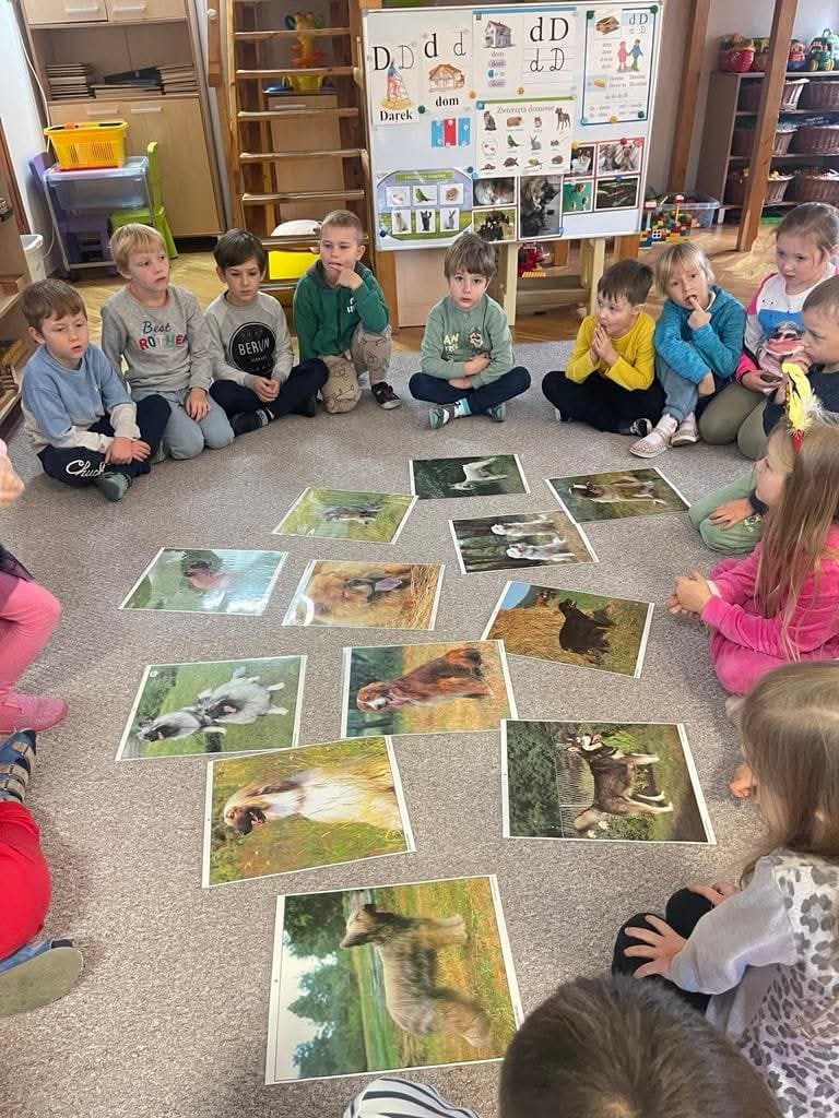 W listopadzie z Odkrywcami rozmawialiśmy o zwierzętach domowych. Utrwalaliśmy informacje dotyczące opieki nad zwierzętami domowymi, sposobach żywienia i odpowiedzialności za nich. Rozwijaliśmy umiejętności matematyczne poprzez utrwalenie przemienności dnia i nocy. Rozmawialiśmy o tym czym różni się dzień od nocy. Zapoznaliśmy się z cyklem obiegu wody w przyrodzie. Gościliśmy wyjątkowego gościa ? Panią Leśnik z Nadleśnictwa Supraśl. Pani Katarzyna Sobolewska opowiadała o owadach. 11 listopada wzięliśmy udział w uroczystej akademii upamiętniającej 106 rocznicę odzyskania przez Polskę Niepodległości. Obchodziliśmy Dzień Pluszowego Misia. Wzięliśmy również udział w akcji fioletowelove2024 organizowanej podczas Światowego Dnia Wcześniaka oraz w Akcji Górze grosza.