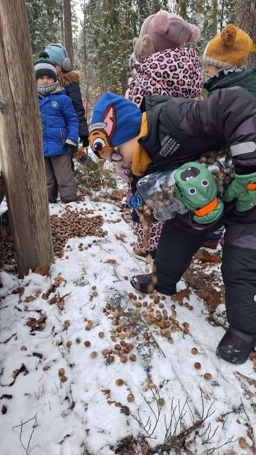 W listopadzie Zdobywcy rozmawiali na temat chmur oraz stworzyli własne chmurki przy użyciu słomek i białej farby. Dowiedzieliśmy się również w jaki sposób zwierzęta przygotowują się do zimy. Odwiedziliśmy również pobliski paśnik i zanieśliśmy wcześniej nazbierane żołędzie oraz pokarm dla ptaków. Innym tematem, który został poruszony były zwierzęta domowe, gdzie dzieci poznały gatunki zwierząt jakie można hodować w domu oraz dowiedziały się w jaki sposób się nimi opiekować.