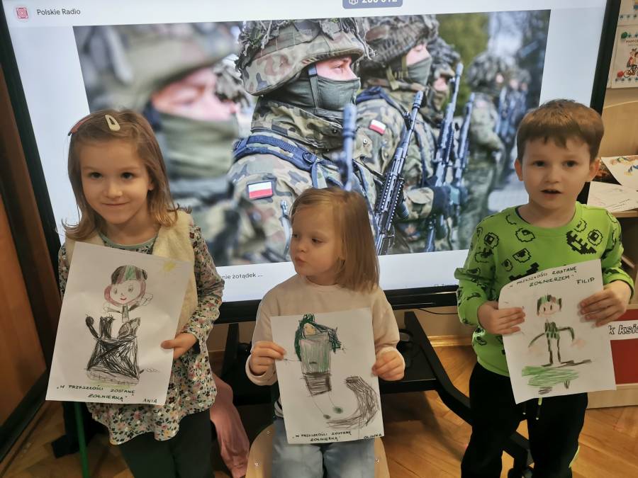 W listopadzie był też czas na rozmowy o zawodach wykonywanych przez ludzi a przy okazji o prawach dzieci i ich obowiązkach oraz o wynikających z nich konsekwencjach. Dzieci utrwaliły sobie nazwy zawodów. Z dumą opowiadały o zawodach wykonywanych przez rodziców. Poznały atrybuty ludzi pracujących w danym zawodzie a na podstawie wiersza Juliana Tuwima Wszyscy dla wszystkich przekonały się o konieczności współpracy ludzi z różnych zawodów. Temat zawodów zakończyły dniem z hasłem przewodnim: Kim będę w przyszłości. Dzieci rysowały siebie za dwadzieścia lat, dyskutowały na temat zawodu, który będą wykonywać oraz na temat uczucia ciekawości.
