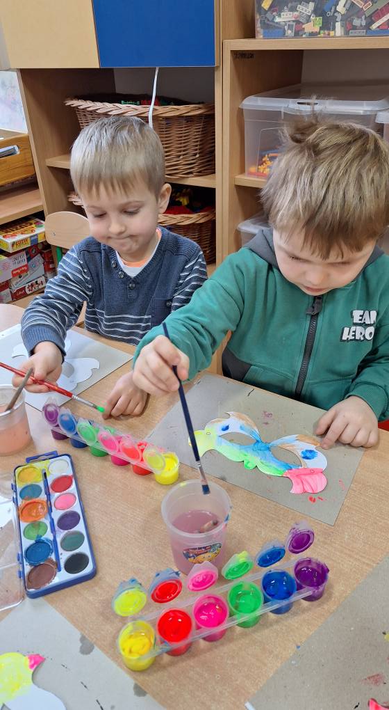 Zdobywcy styczeń rozpoczęli tematem odnośnie Nowego Roku, a następnie rozmawiali o tym co można robić zimą. Wykonali pingwiny przy użyciu plasteliny, powtórzyli jakie zwierzęta możemy spotkać na północnym i południowym kole podbiegunowym. Następnie rozmawiali o karnawale, wykonali swoje własne maski karnawałowe oraz brali udział w Balu Karnawałowym.
