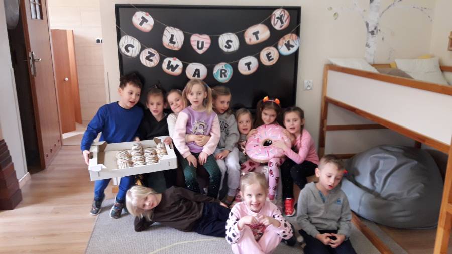 Świętowały Dzień Bezpiecznego Internetu, Walentynki w przyjacielskiej atmosferze, Tłusty Czwartek z pączkami przywiezionymi specjalnie dla nich z piekarni przez tatę Franka- p. Leszka.