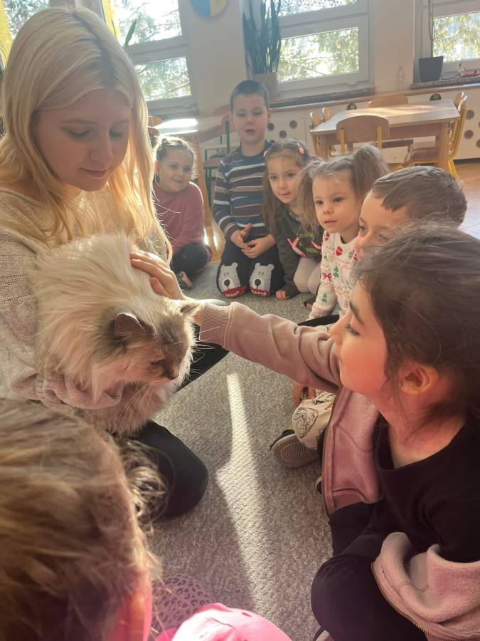 Zdobywcy rozpoczęli luty od rozmów na temat baśni, bajek oraz legend. Wspólnie czytaliśmy baśnie J. Ch. Andersena, wykonaliśmy również pracę plastyczną inspirowaną brzydkim kaczątkiem. W ramach Dnia Bezpiecznego Internetu obejrzeliśmy prezentację. Z okazji walentynek Olek i Szymon przynieśli upominki wszystkim dzieciom. Obchodziliśmy Dzień Kota, który przypada na 17 lutego, a z tej okazji odwiedziły nas dwie piękne kotki rasy ragdoll. Podczas tej wizyty mieliśmy możliwość pogłaskać koty oraz dowiedzieć się więcej o hodowaniu kotów w domu.