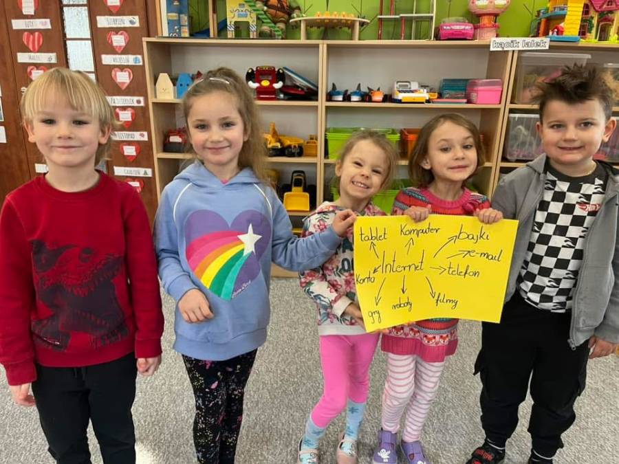 W tym miesiącu rozmawialiśmy również o zimowych mistrzostwach sportowych, dzieci zapoznały się z zimowymi dyscyplinami sportowymi oraz sami wzięli udział w wyścigu ze zniczem Olimpijskim. Zdobywcy wykonali również swoje własne medale z gliny. Ponadto rozmawialiśmy o wynalazkach, zrobiliśmy burzę mózgów na temat Internetu, wykonaliśmy pracę plastyczną w postaci pralek, mogliśmy porównać jak współczesne wynalazki wyglądały we wcześniejszych latach.