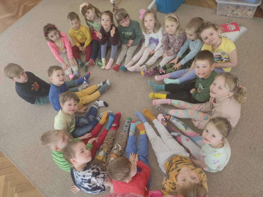 Wykonaliśmy eksperyment z deszczową chmurką, dzięki któremu dzieci dowiedziały się skąd się bierze deszcz. Obchodziliśmy Dzień Logopedy oraz Światowy Dzień Zespołu Downa, podczas którego dzieci założyły kolorowe skarpetki nie do pary na znak solidarności.