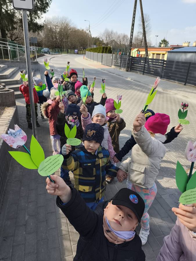 Uroczyście powitaliśmy wiosnę, ubierając Marzannę oraz spacerując po mieście, w trakcie którego dzieci rozdawały mieszkańcom własnoręcznie wykonane kwiaty.