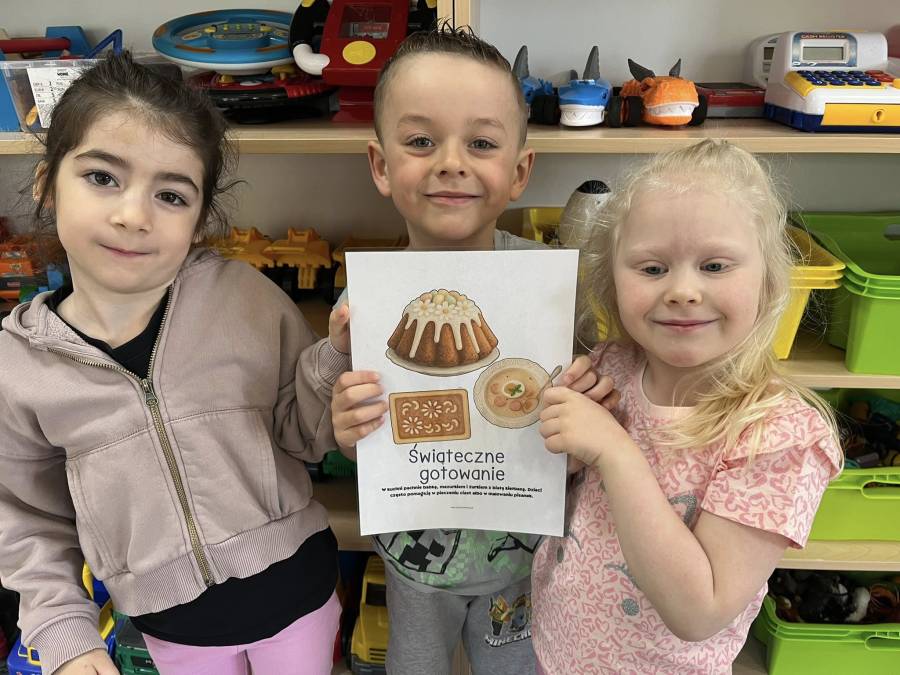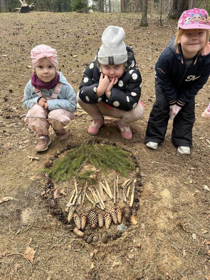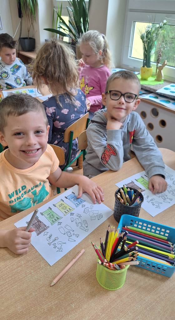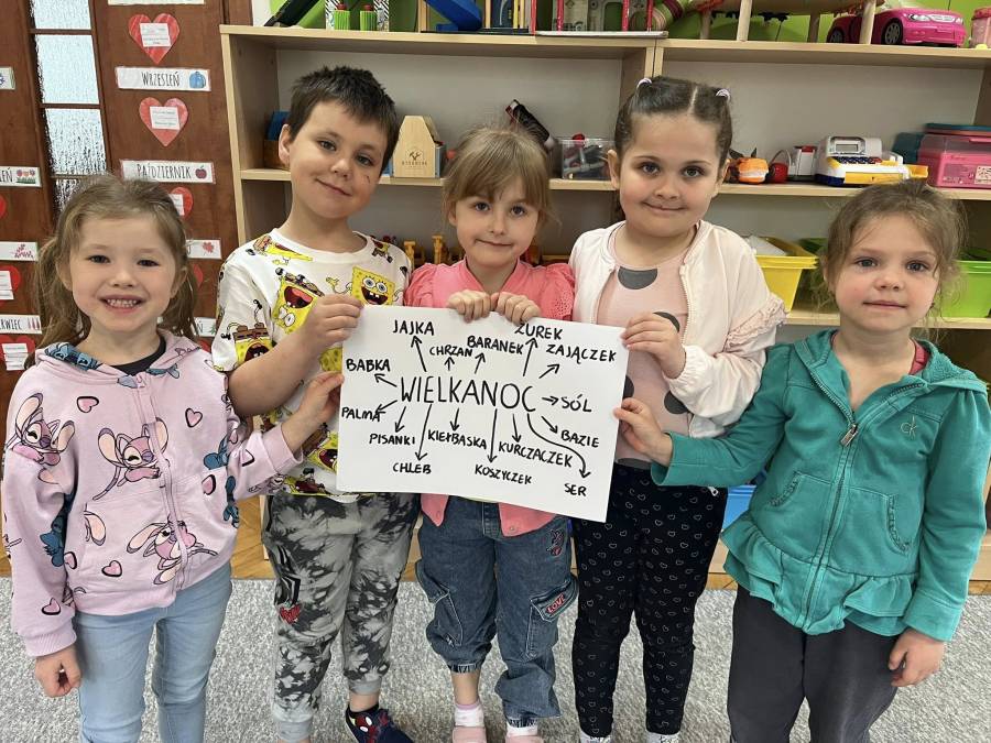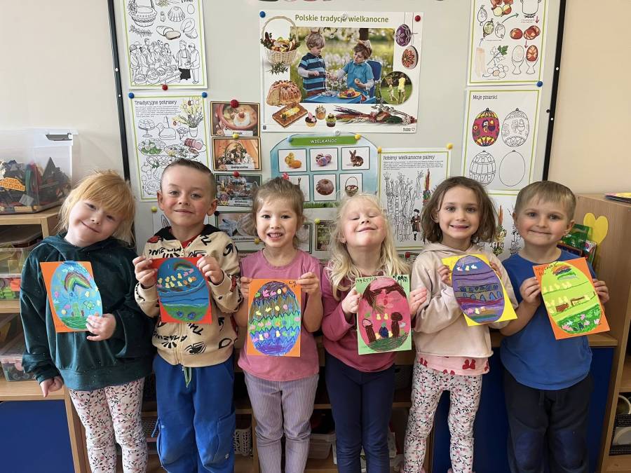 Dzieci zajęły się następnie tematyką Wielkanocy. Stworzyli wzory swoich pisanek przy pomocy szyszek, patyków i mchu. Zrobili burze mózgów na temat Wielkanocy, omówili świąteczne potrawy oraz tradycje. Wykonali również prace plastyczną- pisanki na papierze.