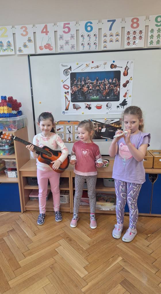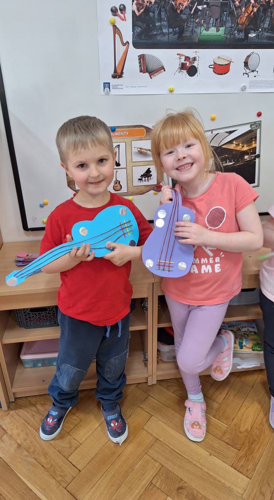 Następnie rozmawiali o muzyce, poznali różne instrumenty, a nawet na niektórych mieli okazje zagrać. Stworzyli swoje papierowe gitary oraz grali na bum bum rurkach.