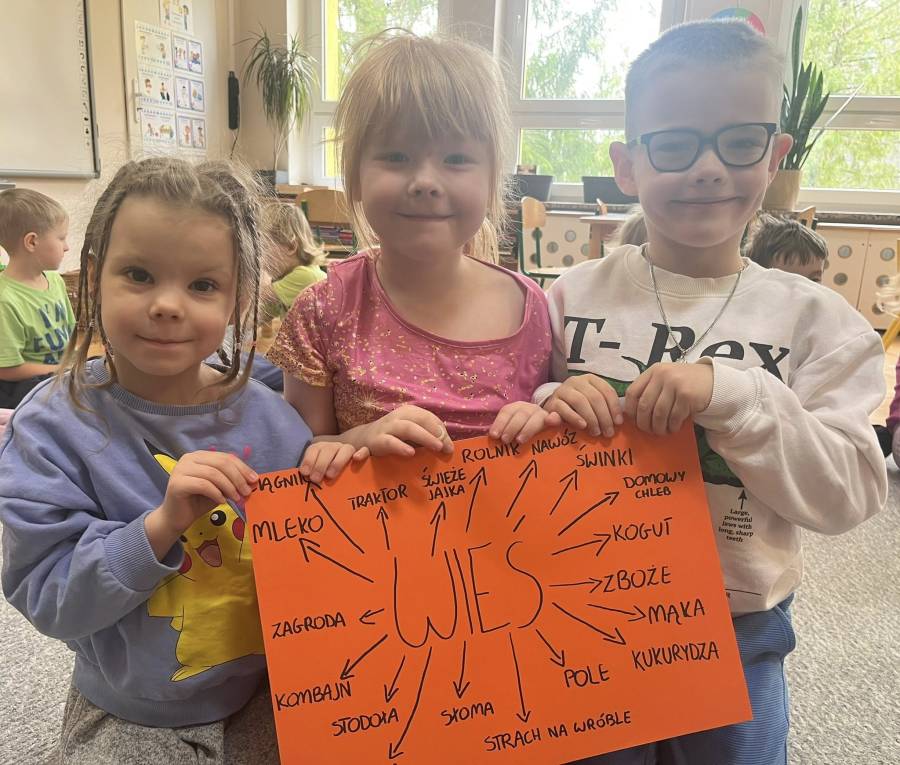 Kwiecień Zdobywcy rozpoczęli od poznania pracy rolnika. Omówili różnice między wsią a miastem oraz między sianem a słomą. Zapoznali się również z polnymi roślinami oraz maszynami rolniczymi.
