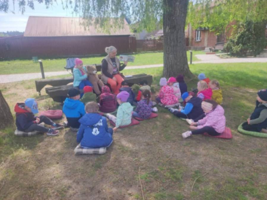 Podczas wizyty w bibliotece mogliśmy posłuchać bajki na świeżym powietrzu.