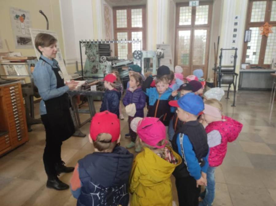 Mróweczki wybrały się na krótką wycieczkę do Muzeum Sztuki Drukarskiej i Papiernictwa w Supraślu. Dzieci wykonały tam swoje własne zakładki do książek.