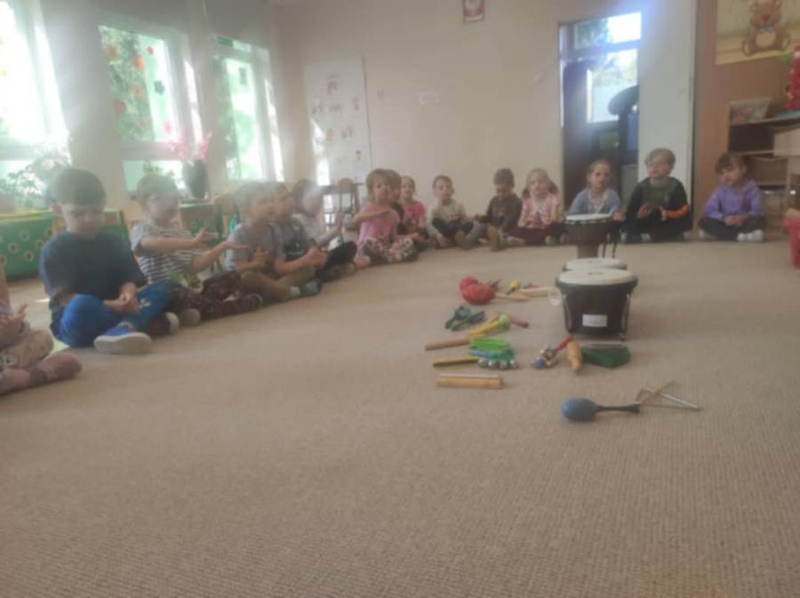Mróweczki miały okazję poznać, zobaczyć oraz spróbować zagrać na różnych instrumentach. Pierwszy raz dzieci wystukiwały różne rytmy na bum bum rurkach.