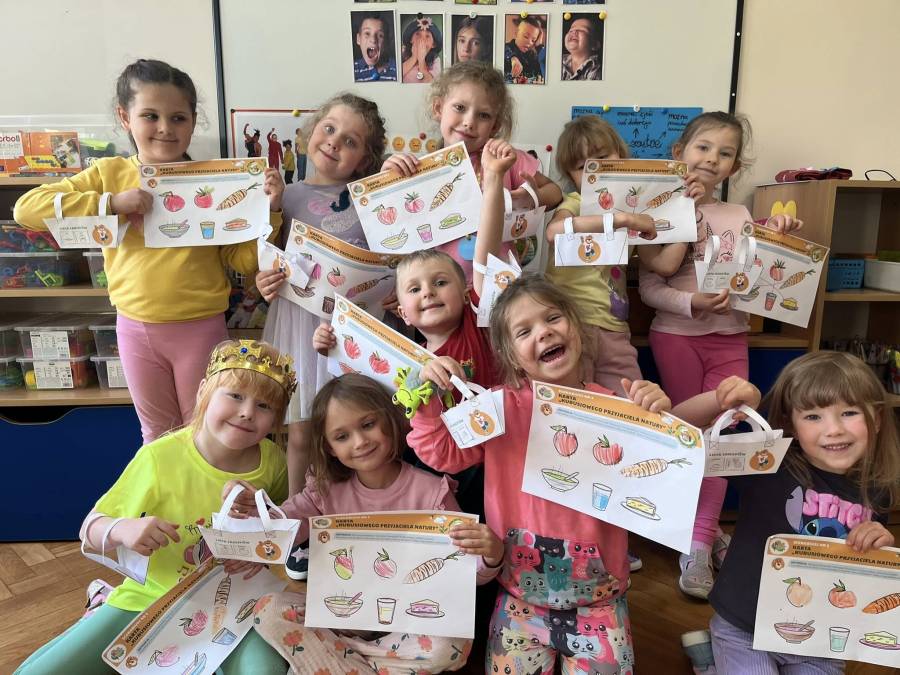 Zrealizowali również program Kubusiowi Przyjaciele Natury, podczas którego rozmawiali o pogodzie i klimacie. Dowiedzieli się w jaki sposób można oszczędzać prąd i wodę oraz dlaczego jest to tak istotne. Rozmawiali również o źródłach zielonej energii i wykonali plakat.