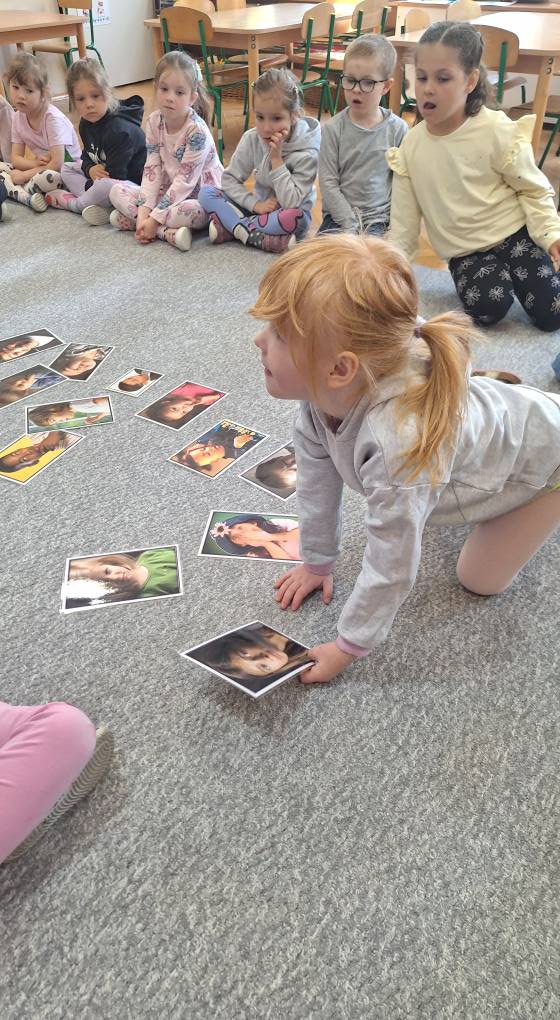 Innym tematem, który zainteresował dzieci były emocje. Podczas tych zajęć utrwalili nazwy i cechy charakterystyczne różnych emocji.