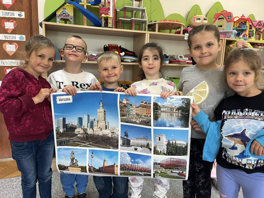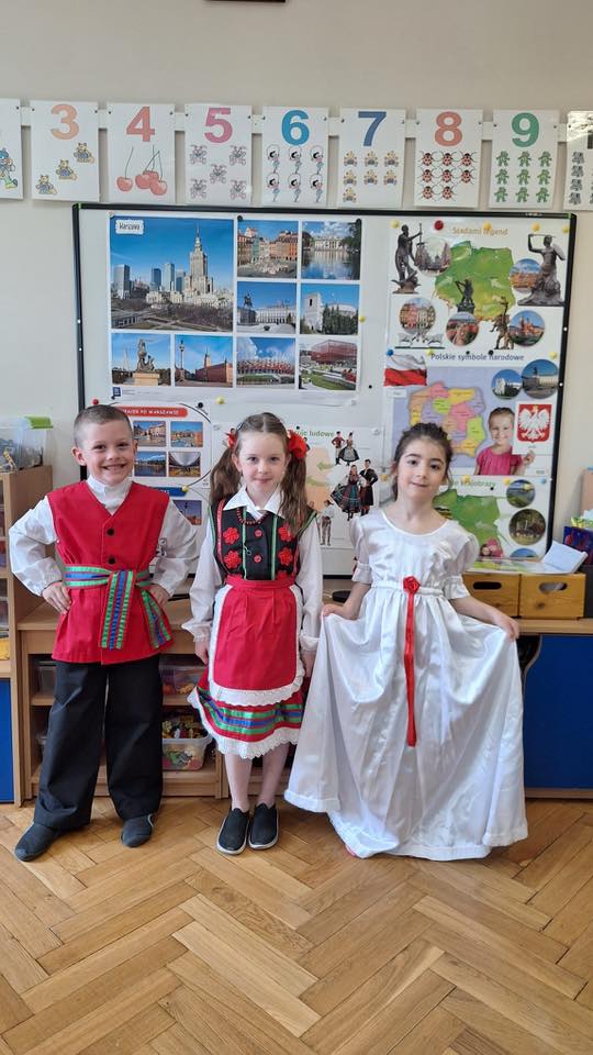 Innym omawianym tematem była Polska- Nasza Ojczyzna. Podczas tych zajęć wysłuchali legend, rozpoznawali zabytki, omówili stolice Polski- Warszawę oraz mieli okazje przymierzyć stroje ludowe.