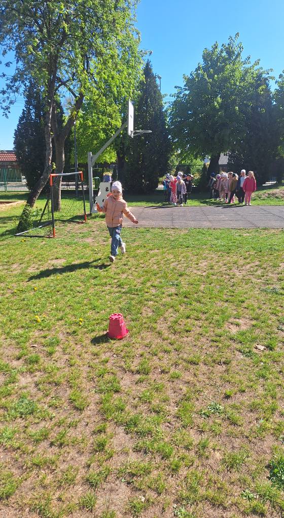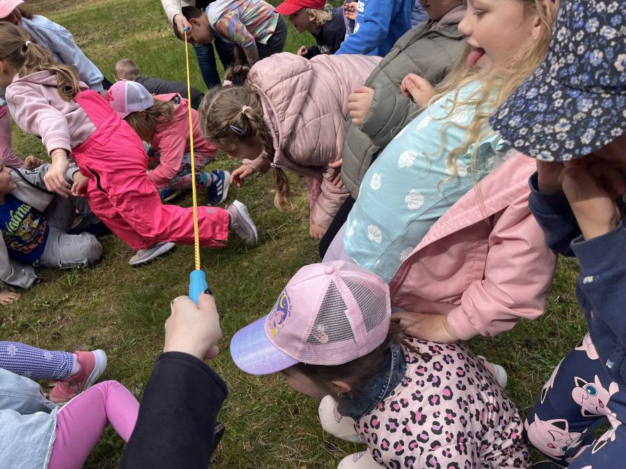 Podczas zajęć outdoorowych Zdobywcy bawili się z chustą animacyjną, stworzyli swoje drzewo oraz próbowali swoich sił w przechodzeniu pod liną. Odwiedziła ich również Pani Taida- mama Taidki, która przeczytała im bajkę.