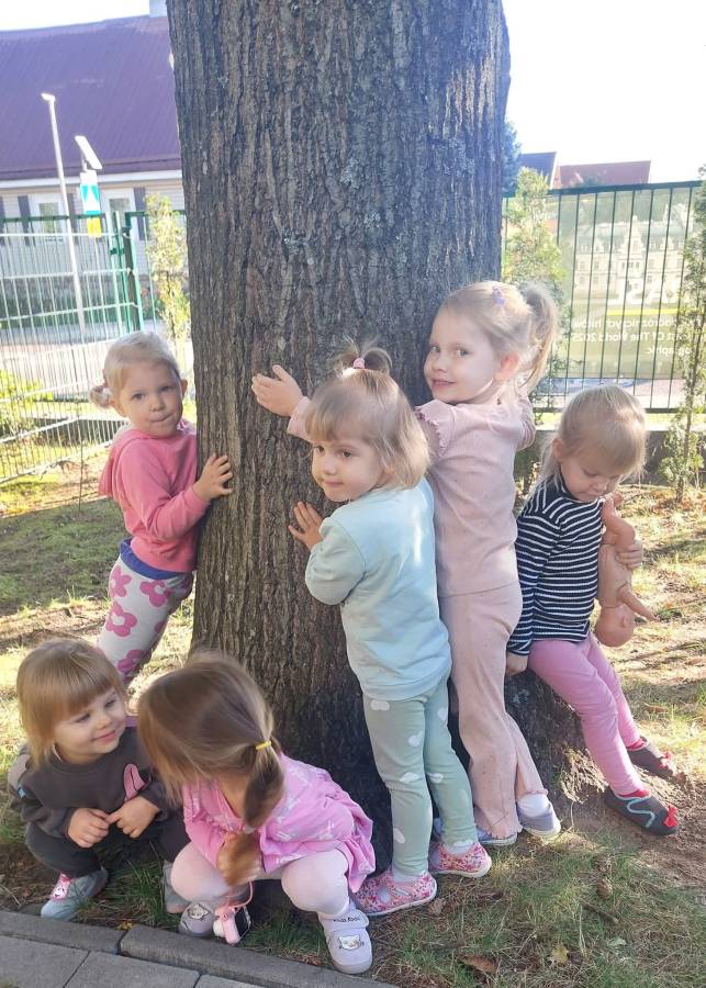 Radośnie świętowały Dzień Przedszkolaka. Brały udział w akcji Przytul się do drzewa.