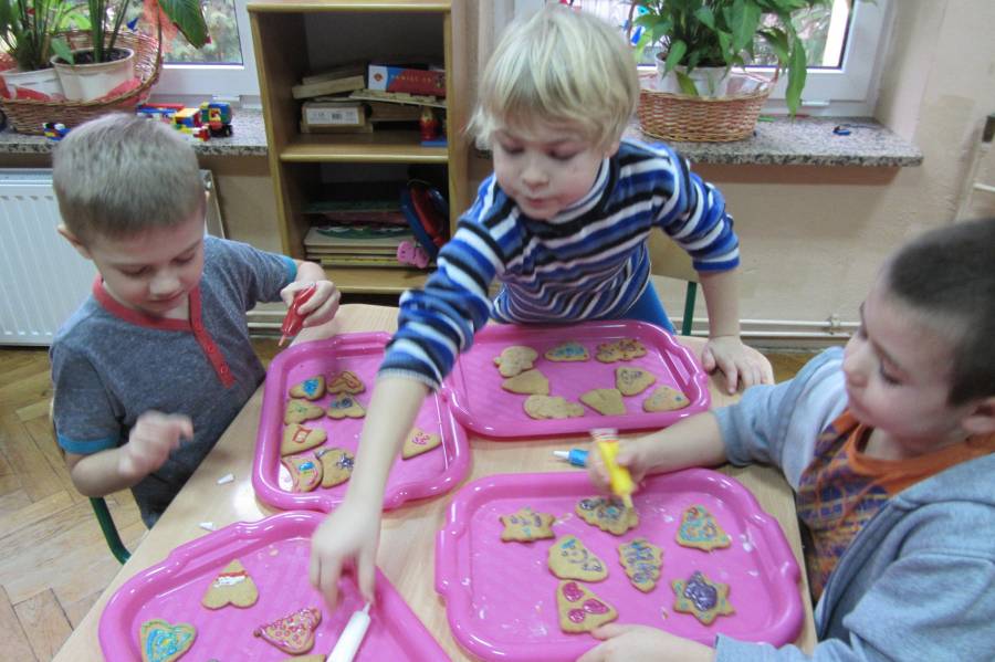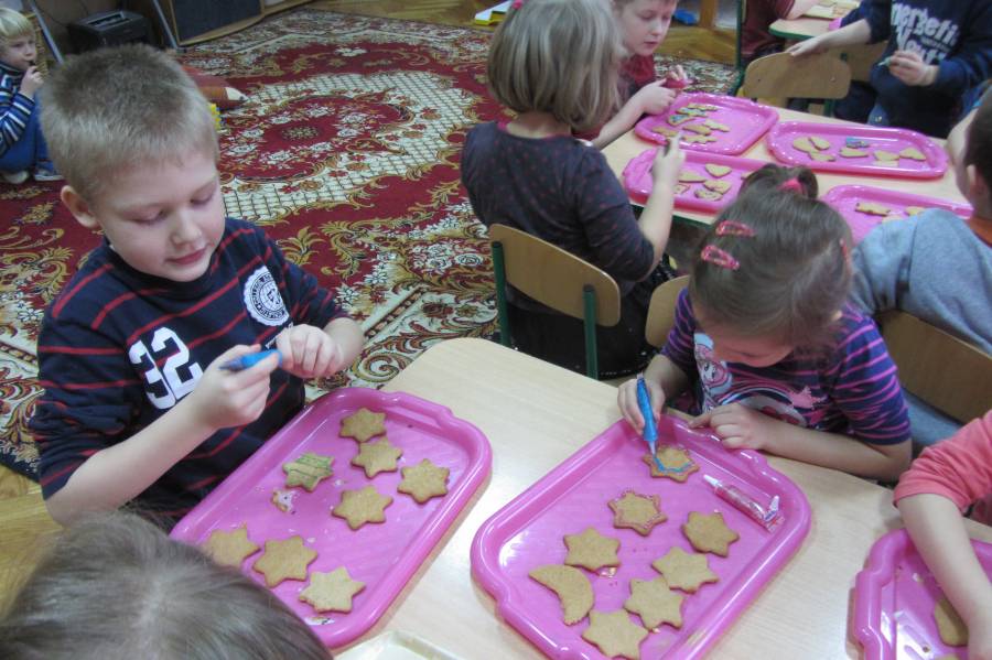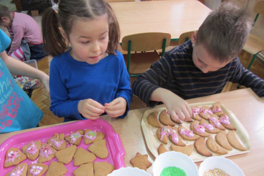 Dzięki uprzejmości właściciela "Biesiady" w Supraślu - pana Kamila Zaborskiego, Gumisie otrzymały wielki kosz pierników i zajęły się najbardziej profesjonalną dekoracją świątecznych ciasteczek. Lukry, cukry, kulki i flamastry, do tego gwiazdki i czerwone posypki - miały w czym wybierać!!! Oto efekty ich działań!!!! Zapakowanymi piernikami poczęstowaliśmy Panią Dyrektor oraz Personel Administracyjny, a resztę rozdamy mieszkańcom Supraśla!!!