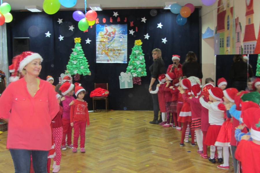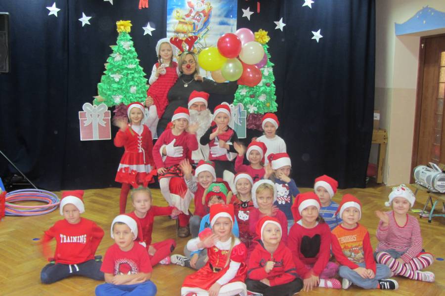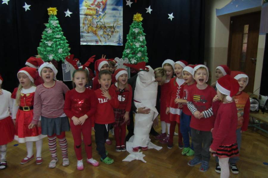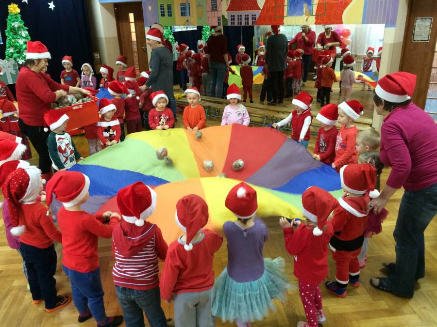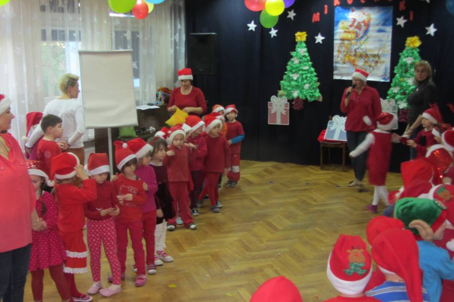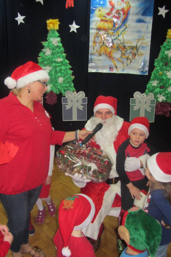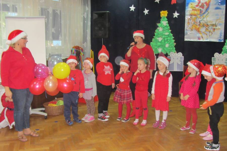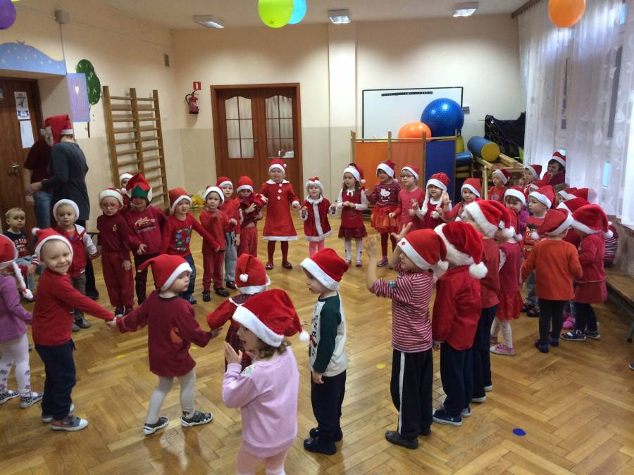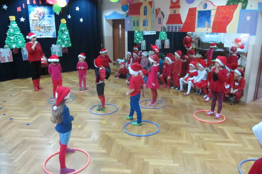 Spotkanie z Mikołajem minęło w bardzo miłej atmosferze. A gdy już odjechał, dzieci zostały zaproszone do udziału w zabawie mikołajkowej. Były konkursy, zagadki, śpiew i taniec. Naszym dzielnym przedszkolakom, którzy stanęli do konkurencji sportowych dopingowały nie tylko dzieci, ale i panie. Uśmiech i wyjątkowa atmosfera zagościła dookoła.