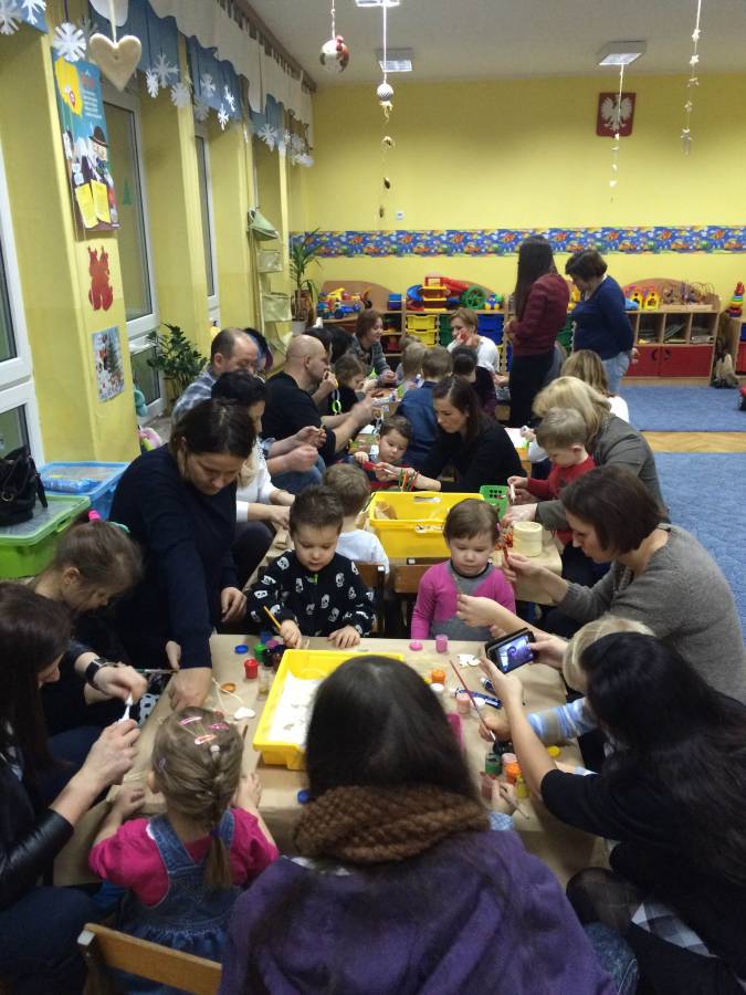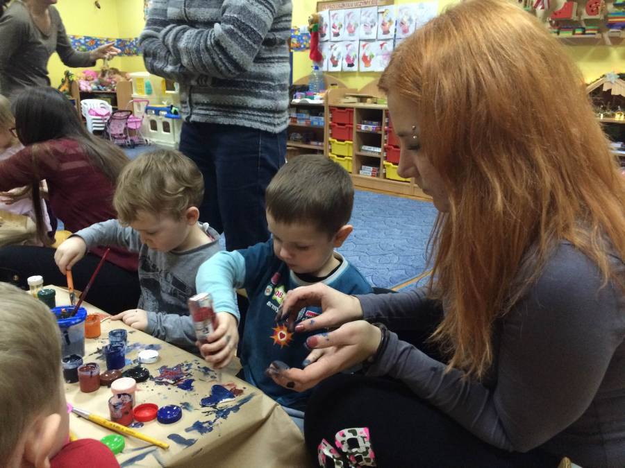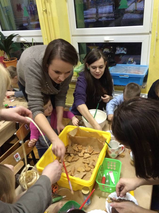 Nasze najmłodsze przedszkolaki zaprosiły swoich Rodziców na spotkanie bożonarodzeniowe. Zaśpiewały i zatańczyły przed gośćmi, których później zaprosiły do wspólnego ubierania choinki. Ozdoby były przeróżne - z papieru, masy solnej, a także pierniki wcześniej upieczone przez dzieci wraz z wychowawczyniami. I właśnie te cieszyły się największym powodzeniem, bowiem wiele pierników w magiczny sposób ubyło podczas ich dekoracji. Cudowne!!!