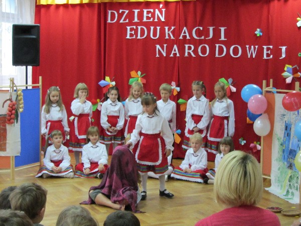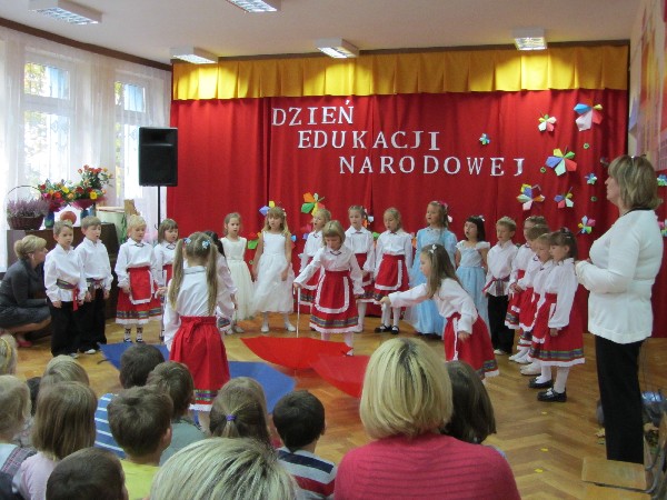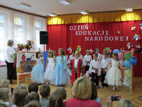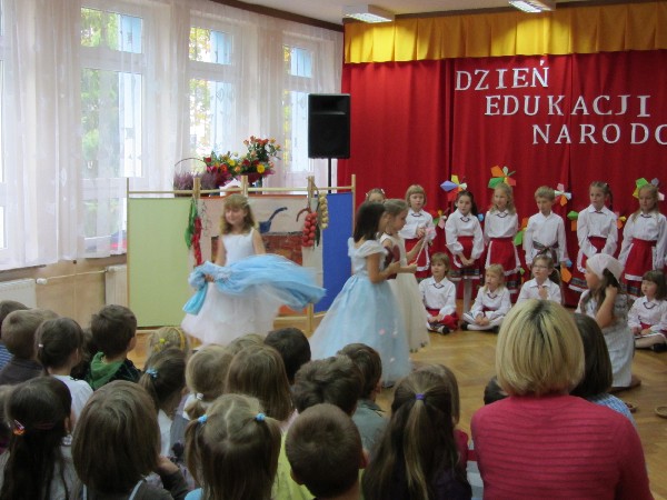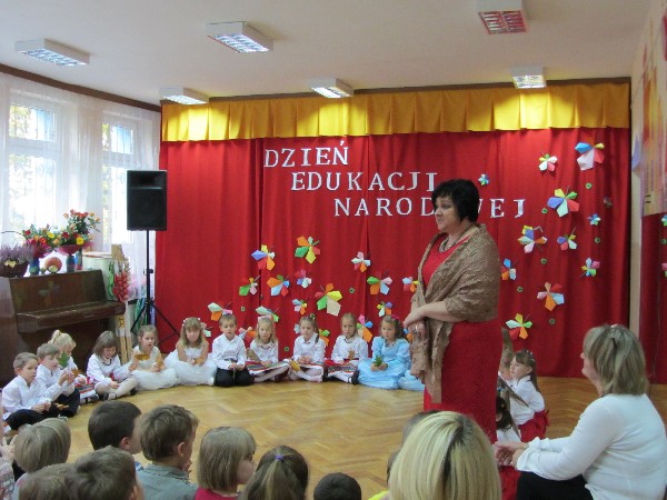 12 października w naszym przedszkolu uroczyście obchodzono Dzień Edukacji Narodowej. Z tej okazji nauczycielom, pracownikom administracji i odsługi dzieci z grupy "Gumisiów" przygotowały program artystyczny wyrażający podziękowanie za cierpliwość, poświęcenie i trud w wychowaniu. Dyrektor przedszkola pani Ewa Kołosowska na koniec złożyła wszystkim pracownikom wielu sukcesów zawodowych.