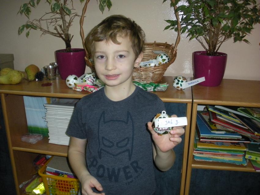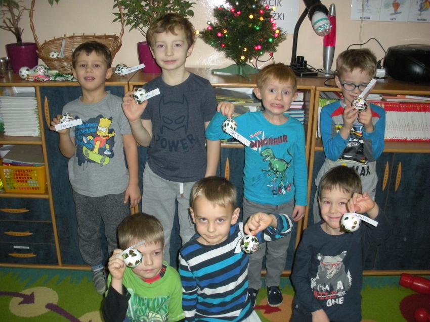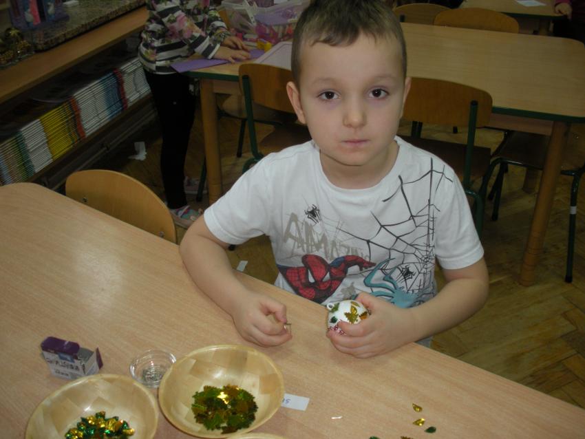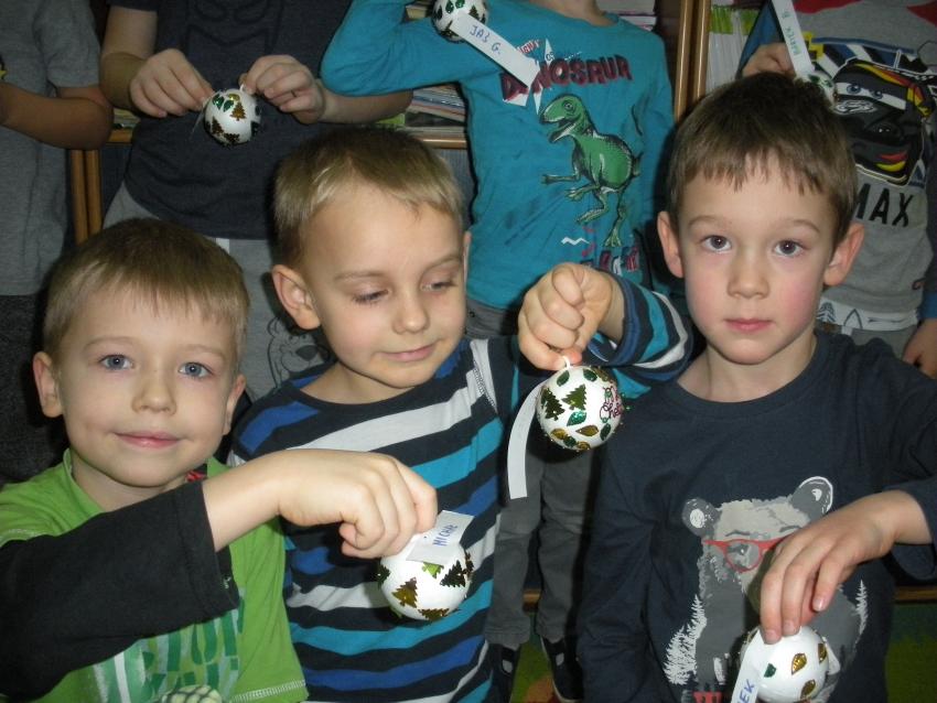 Przedszkolaki przygotowywały własne dekoracje choinkowe - ozdabiały bombki, które podarowała dzieciom mama Kuby