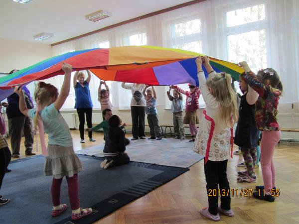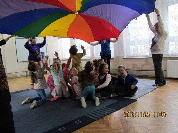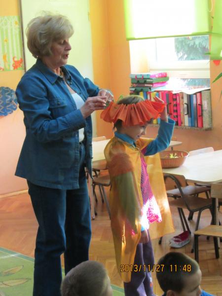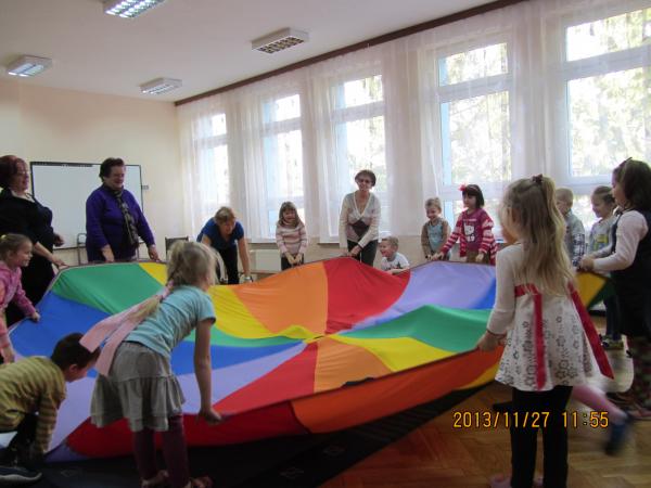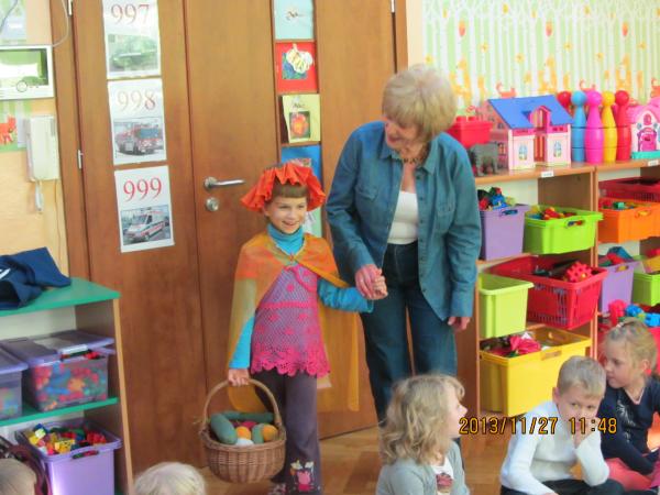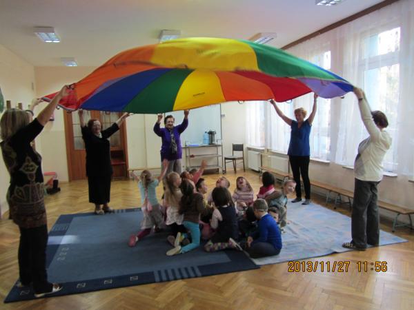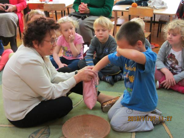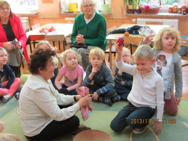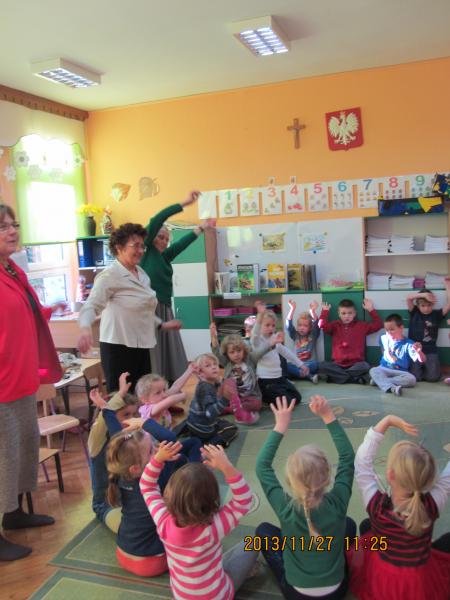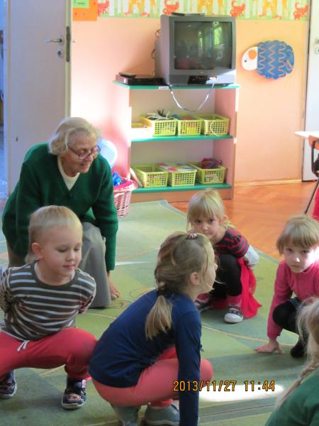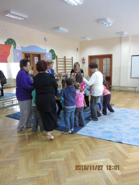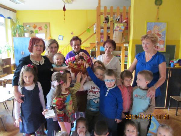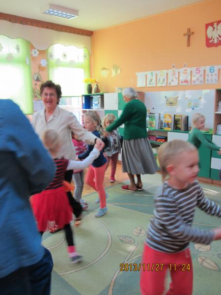 Dnia 20.11.2013r. gośćmi naszego przedszkola były panie z Uniwersytetu Trzeciego Wieku. Dzieci powitały je z entuzjazmem. Spotkanie przebiegło w serdecznej atmosferze. Babcie nauczyły dzieci piosenek i zabaw, w które same bawiły się będąc w przedszkolu. Goście przygotowali konkurs z zagadkami, nagrodami – własnoręcznie wykonanymi warzywami. Spotkanie zakończyło się zabawami z chustą animacyjną i wspólną dyskoteką.