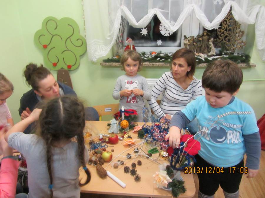 W dniu 03.12.2013 w grupie 4-latków (Elfy) odbyły się warsztaty florystyczne pt. „Dekoracja stołu wigilijnego”.